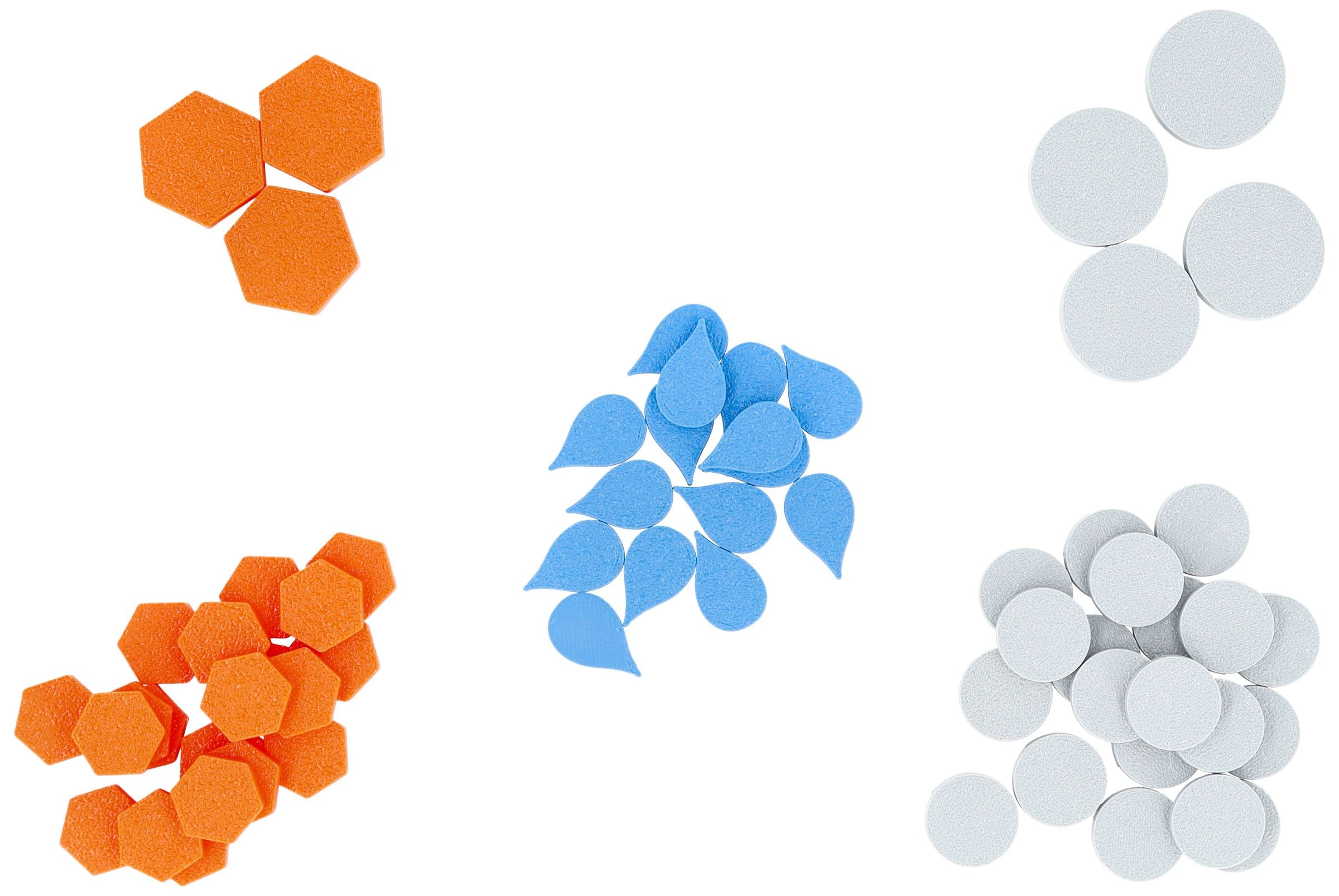 - Well-designed 3D tokens – easy to pick up, sort and distinguish on the table
