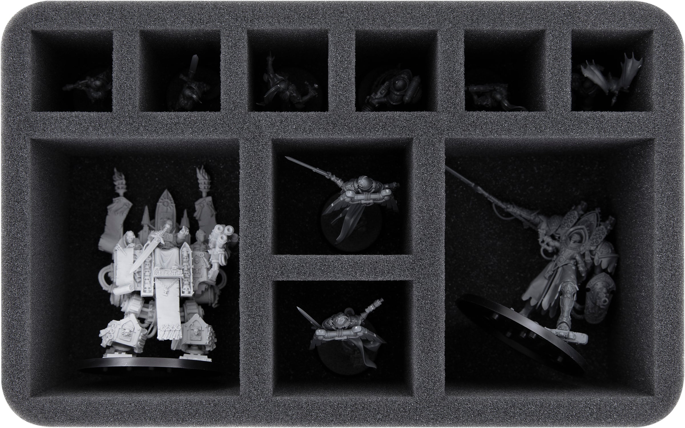 Chaque figurine de votre collection reçoit ici son propre compartiment sur mesure, ce qui garantit que vos modèles restent bien en place pendant le transport. La mousse souple protège les parties sensibles de vos figurines et les couleurs de la figurines peinte sont également à l'abri de l'abrasion et des égratignures.