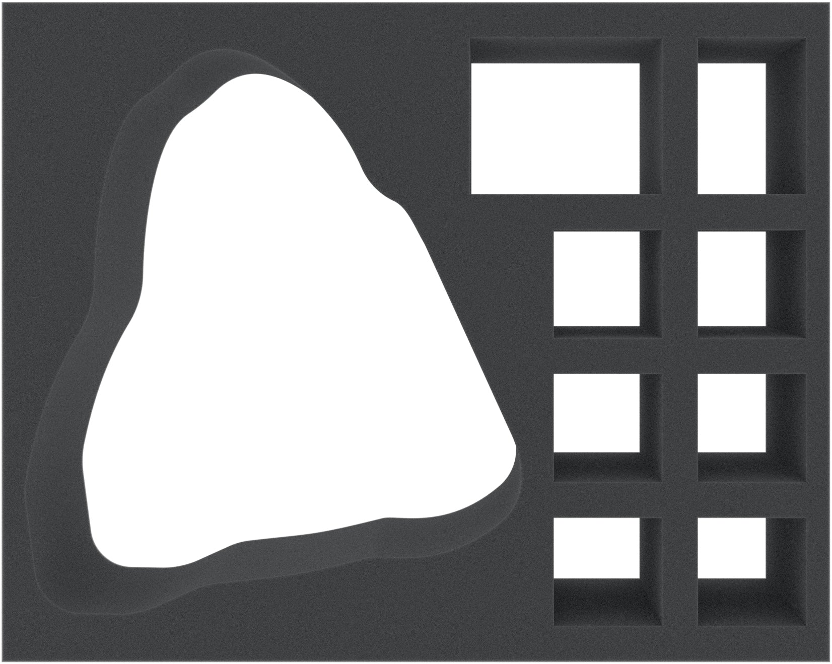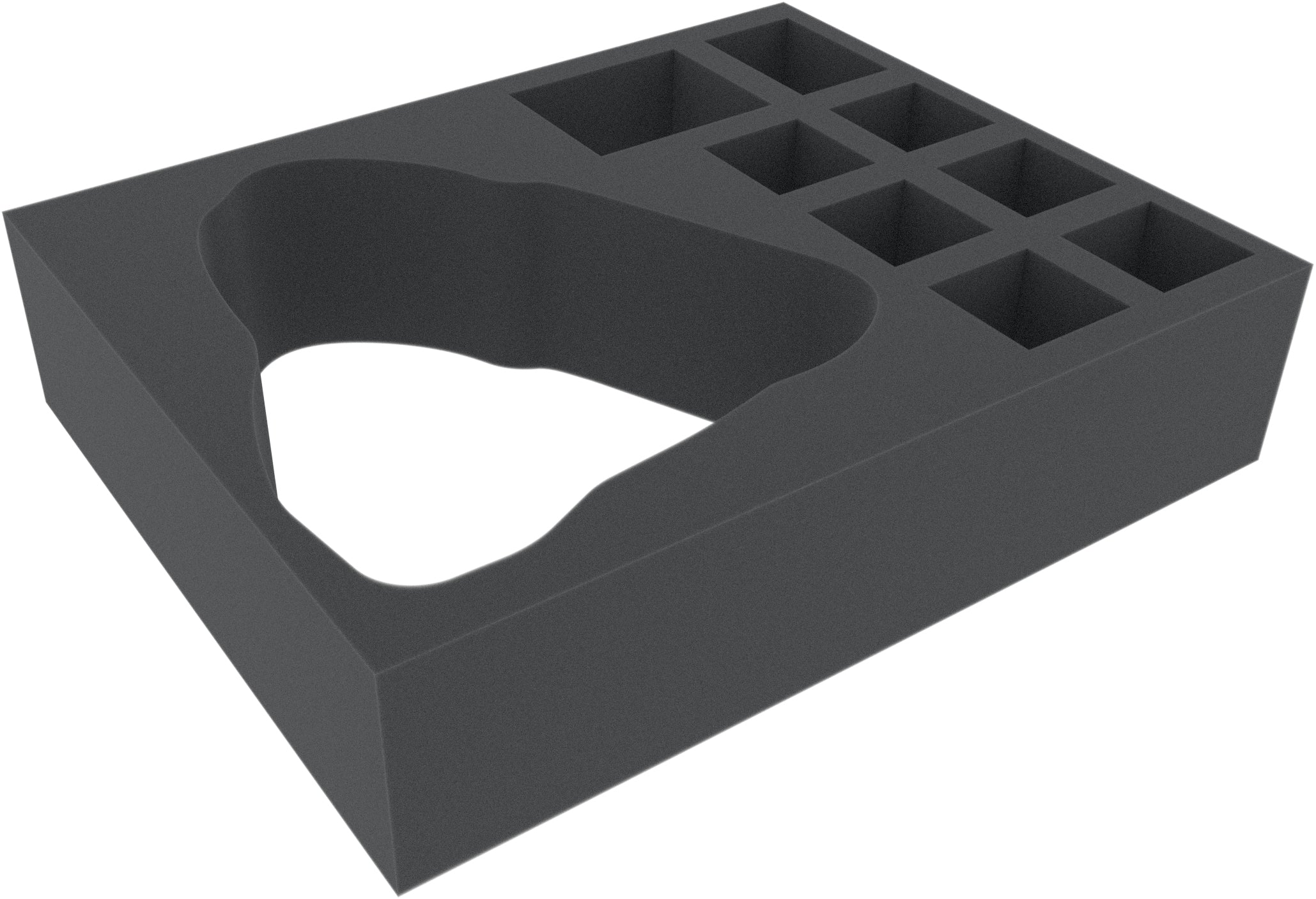Pour que le reste de la figurine soit bien emballé dans de la mousse, ce plateau en mousse est placé sur le FSMEPJ080BO. L'insert est pourvu d'un évidement de coupe miniature précis. Cela protège les ailes sensibles et tous les autres détails filigranes des dommages. Ainsi, lorsque la miniature est enfin peinte après des heures de travail intensif, vous pouvez vous détendre (au moins jusqu'à la prochaine bataille), car les couleurs sont également à l'abri de l'abrasion et des rayures ici.