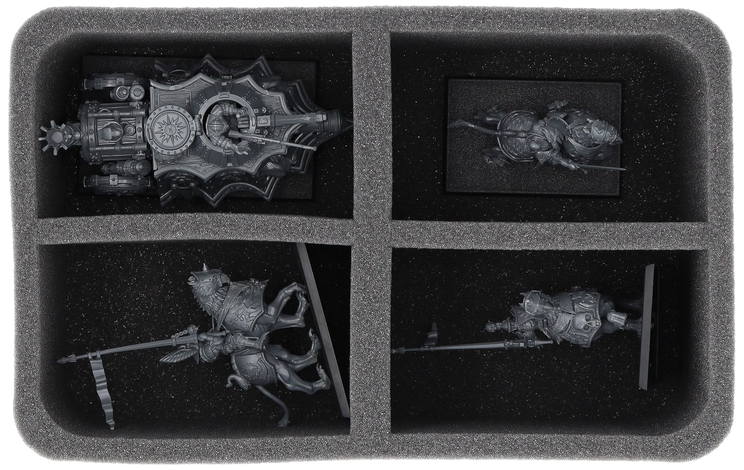Ce plateau en mousse Feldherr peut accueillir jusqu'à 4 figurines de votre armée. L'insert est particulièrement adapté au stockage de l'Empire Steam Tank et de modèles de taille similaire.