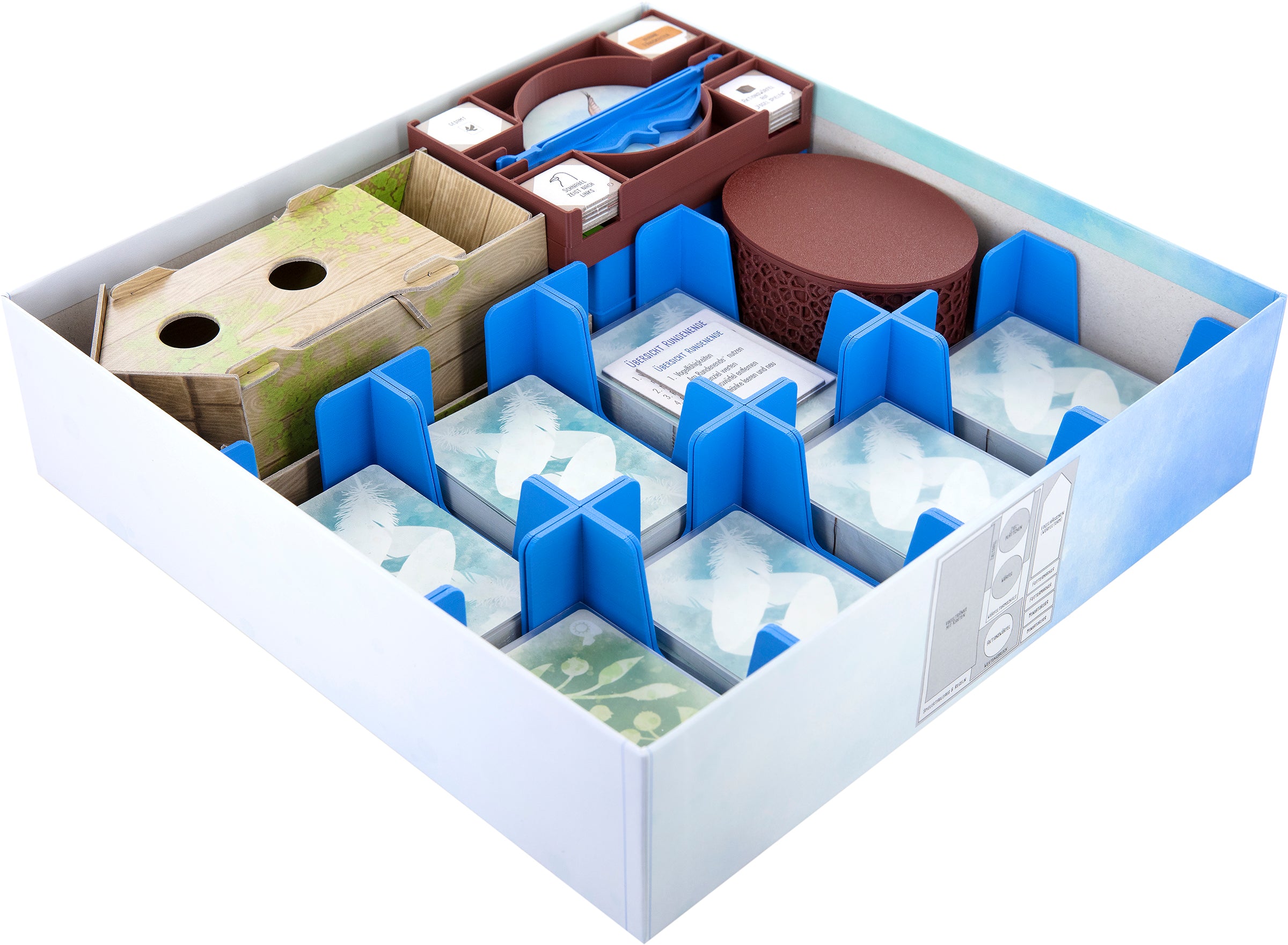 - L'organisateur Deluxe est compatible avec le Feldherr Bird Feeder Deluxe pour Wingspan disponible séparément. La maison s'intègre facilement dans la boîte de jeu de société avec l'organisateur.