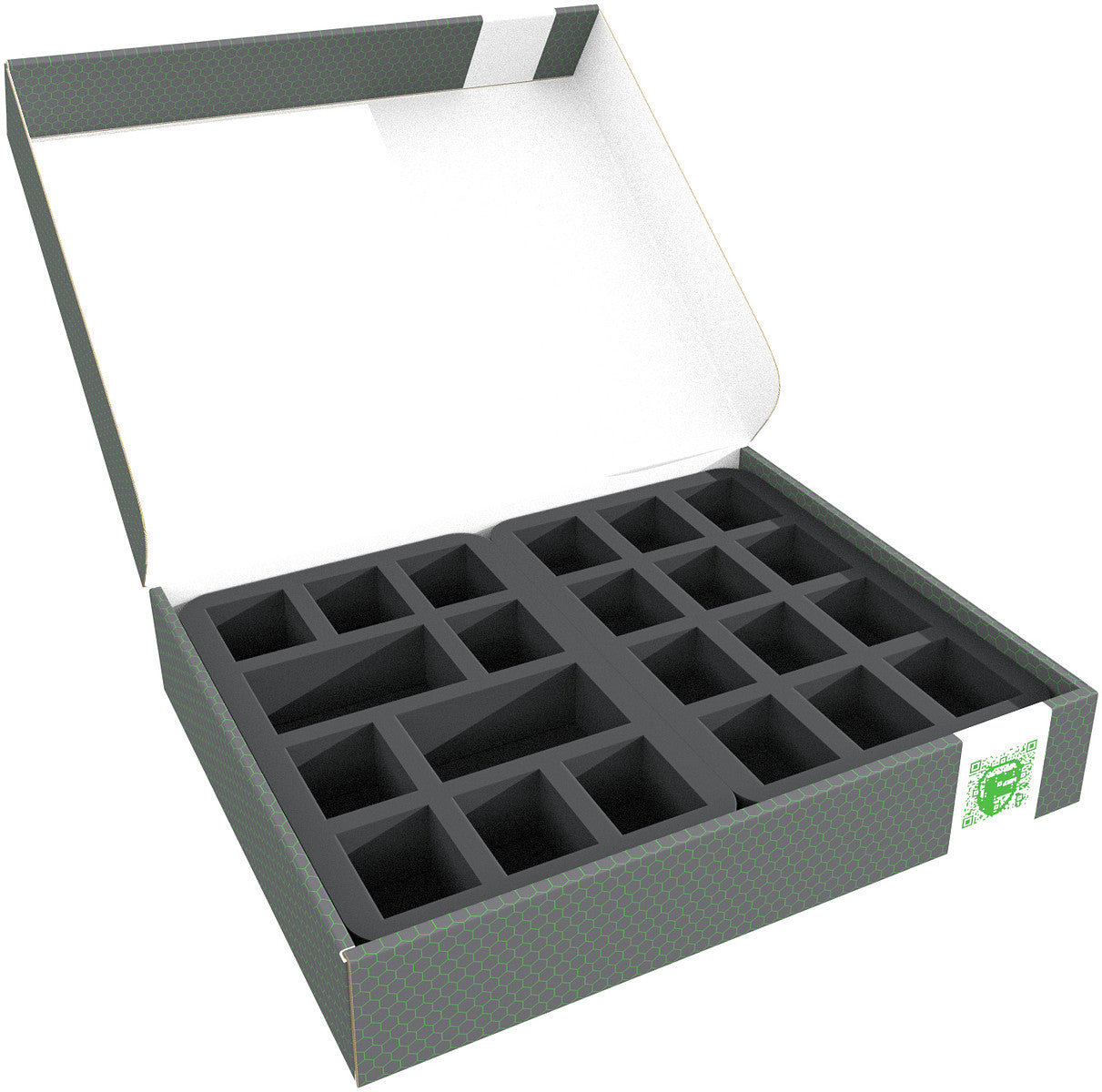 This sturdy FSLB055 Storage Box with matching Feldherr foam inserts is ideal for storing up to 22 warrior models from your Adeptus Mechanicus army and transporting them well-protected.