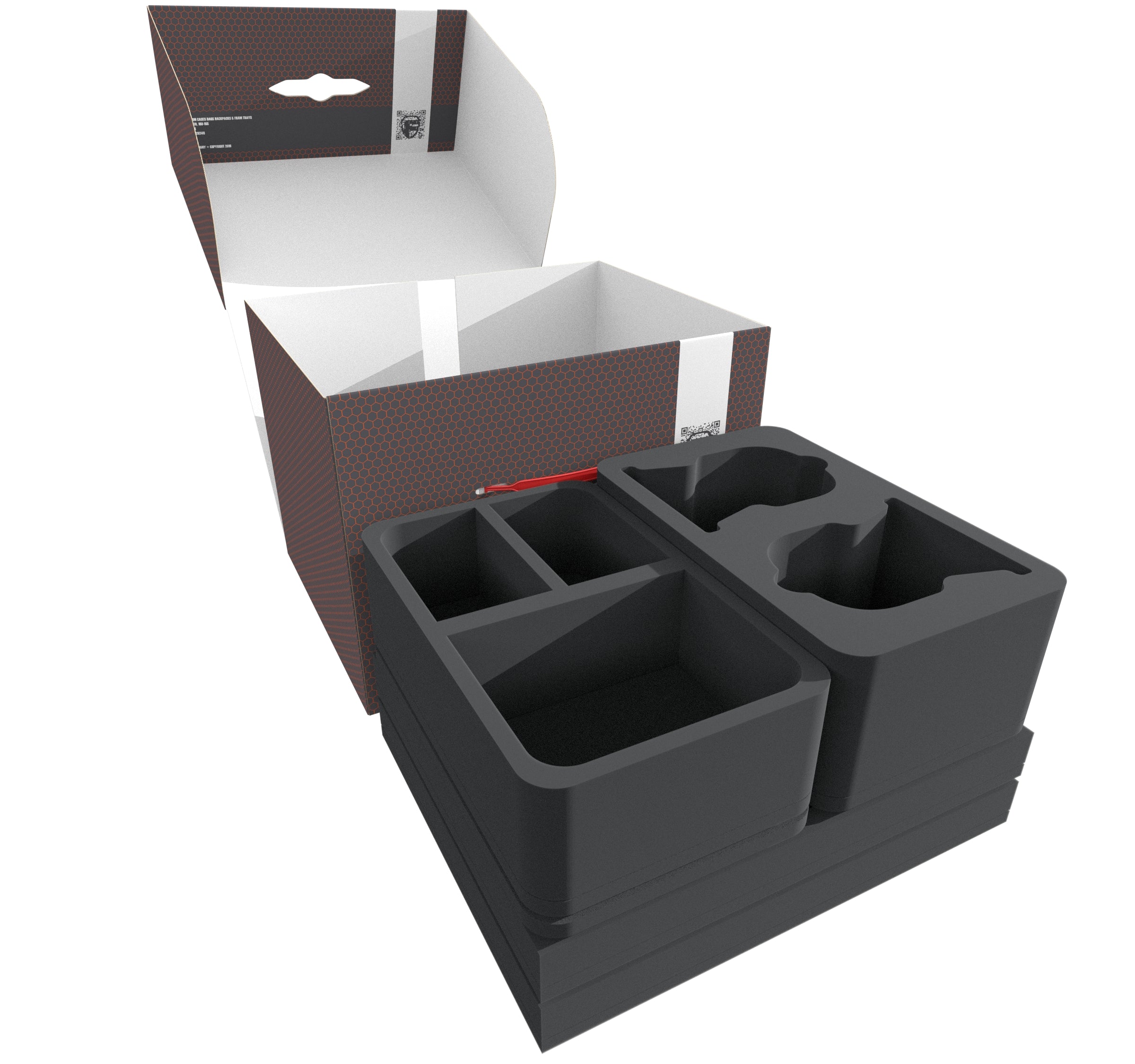 - 1 Half-Size foam tray with one miniature-specific compartment for Skorpius Dunerider, Skorpius Disintegrator + 2 additional compartments (HSMEPP085BO)