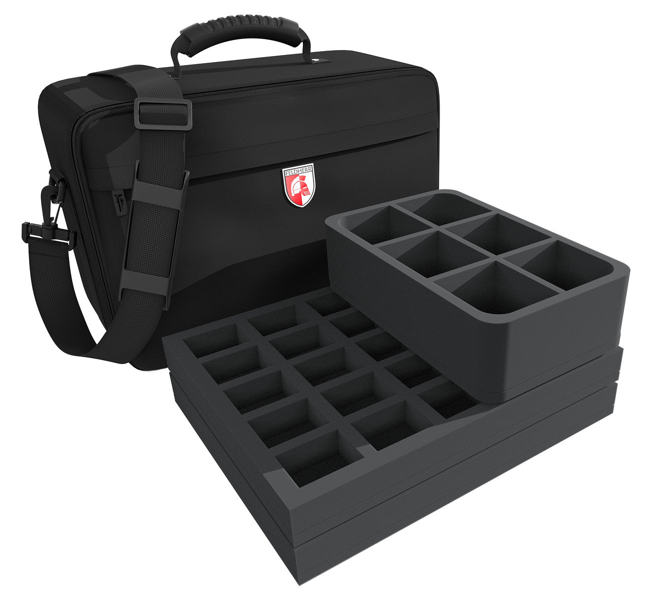 This MAXI bag with matching Feldherr foam trays is ideal for storing up to 70 warrior models and 1 vehicle of your Adeptus Mechanicus army and transport them well protected to the battlefield.