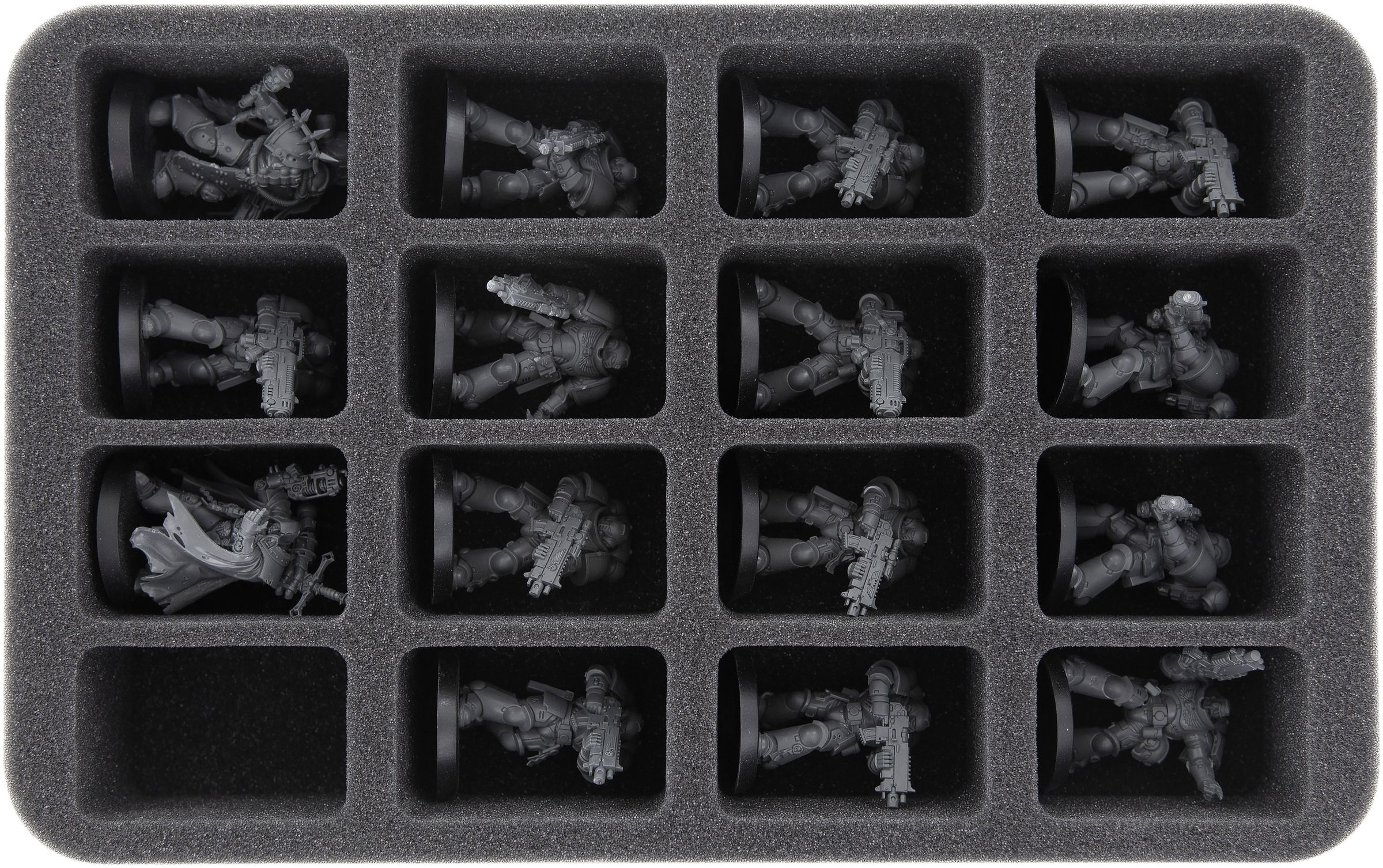 Custom-fit compartments made of soft foam reliably protect your miniatures from damage and also ensure that your painted units arrive safely at the tabletop without scratches.