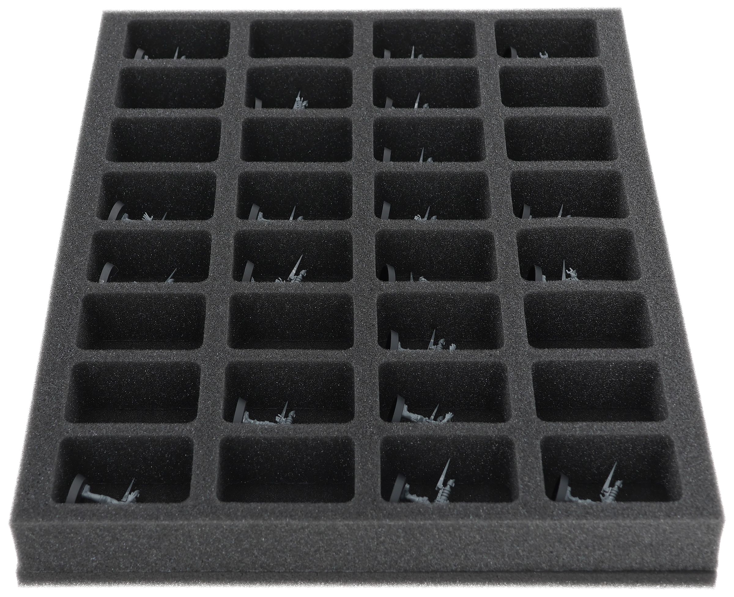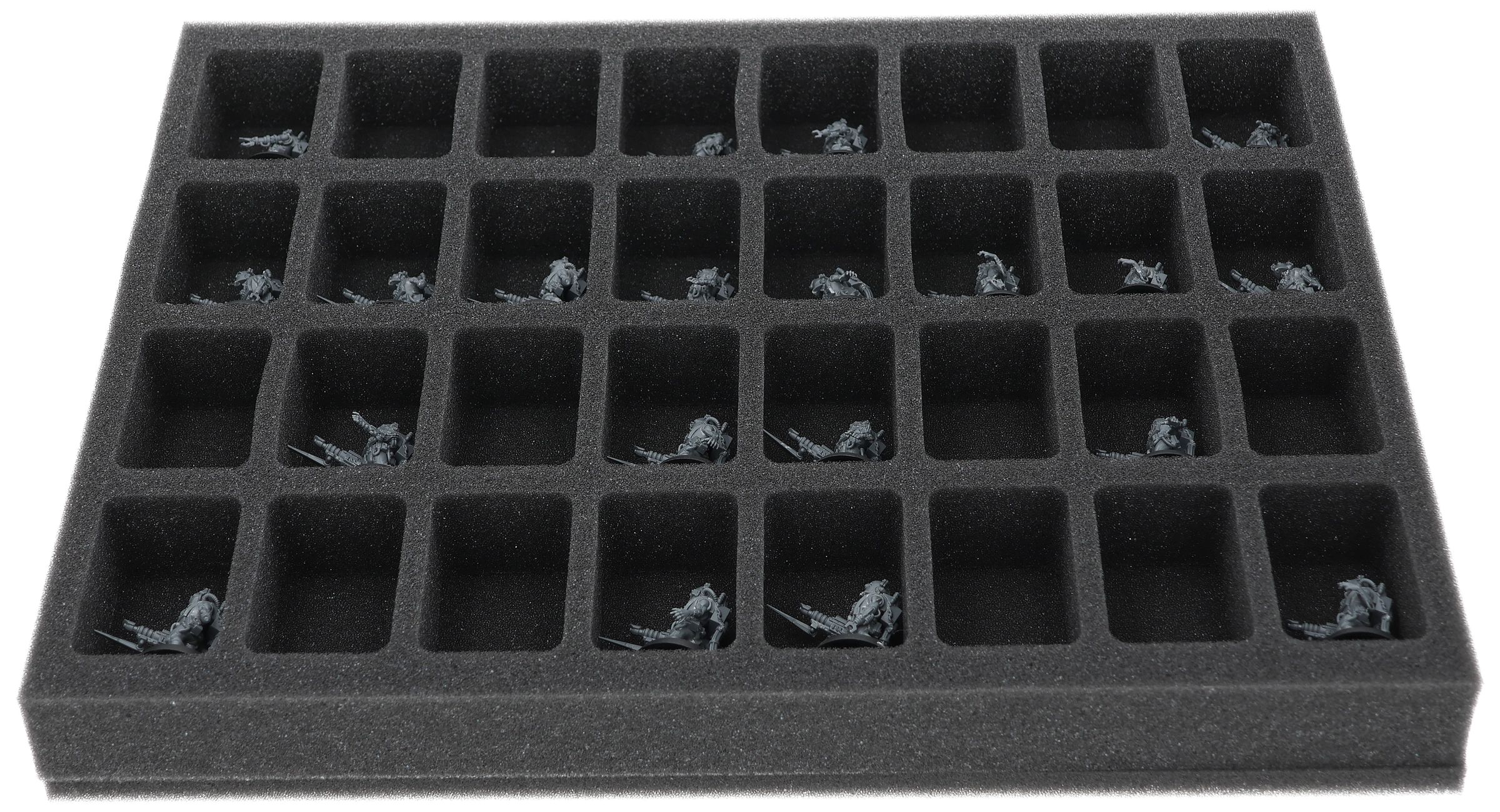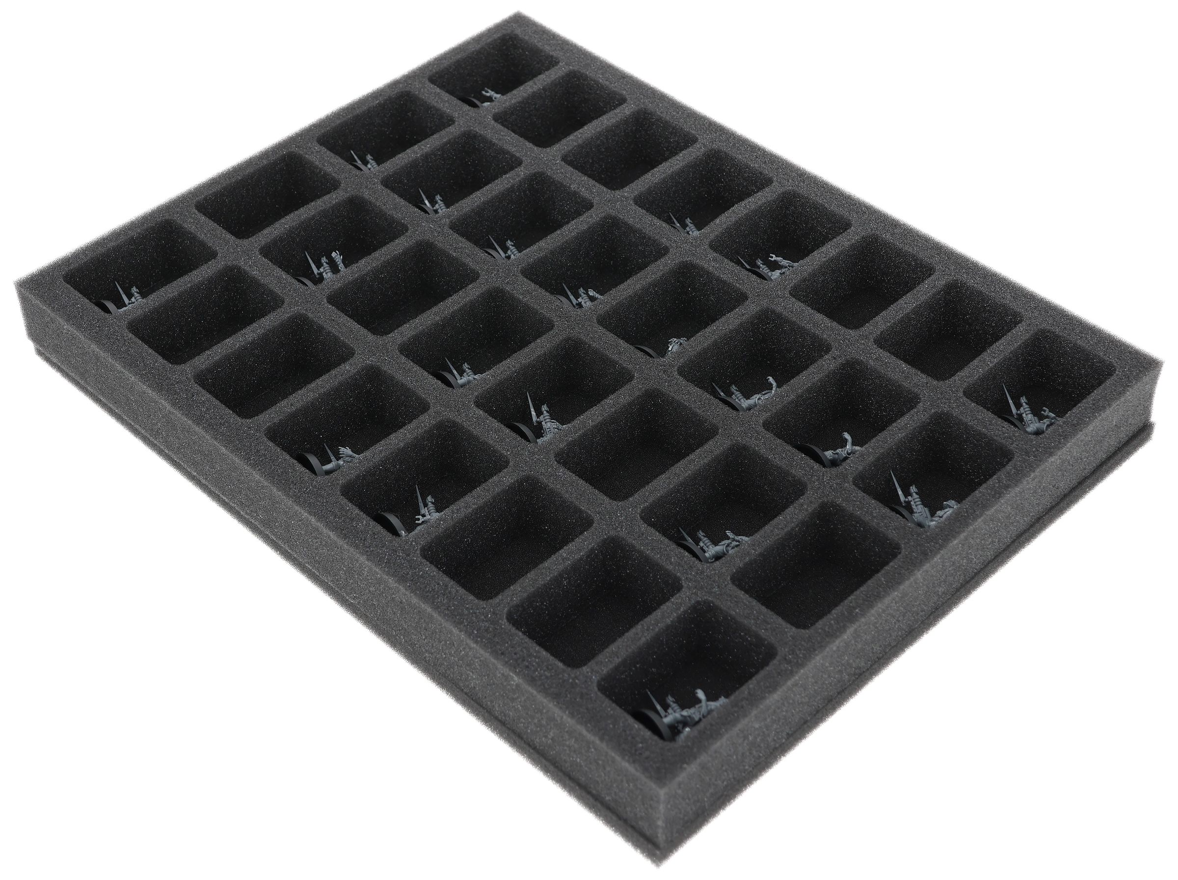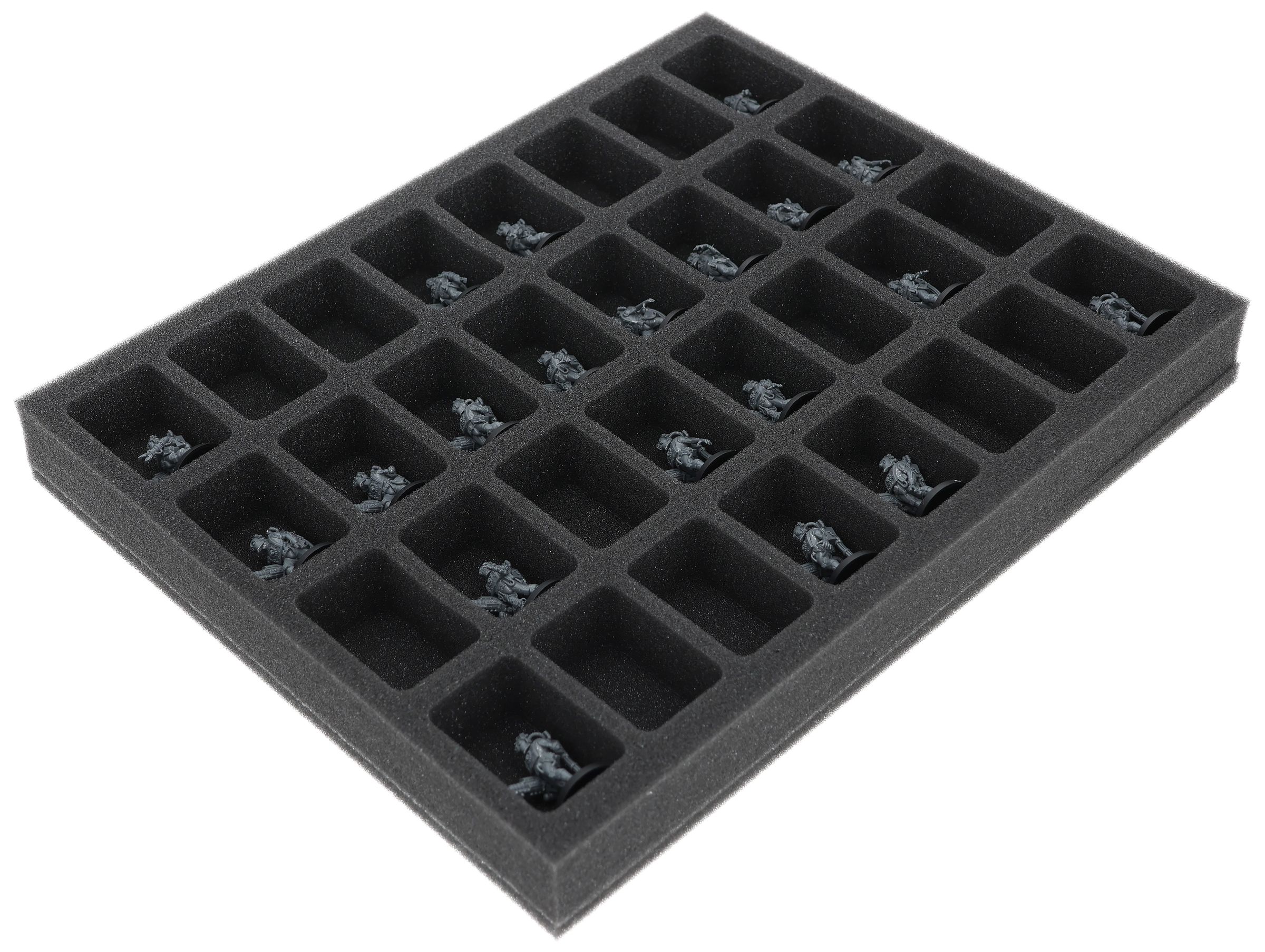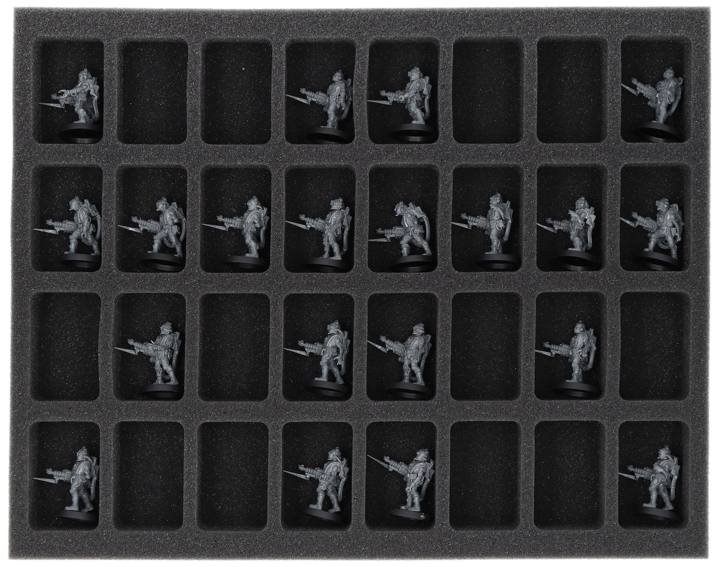 On this Feldherr foam tray you have space for up to 32 miniatures of your army. The insert is especially suitable for storing the Adsecularis-Tech-thralls and similar sized models.