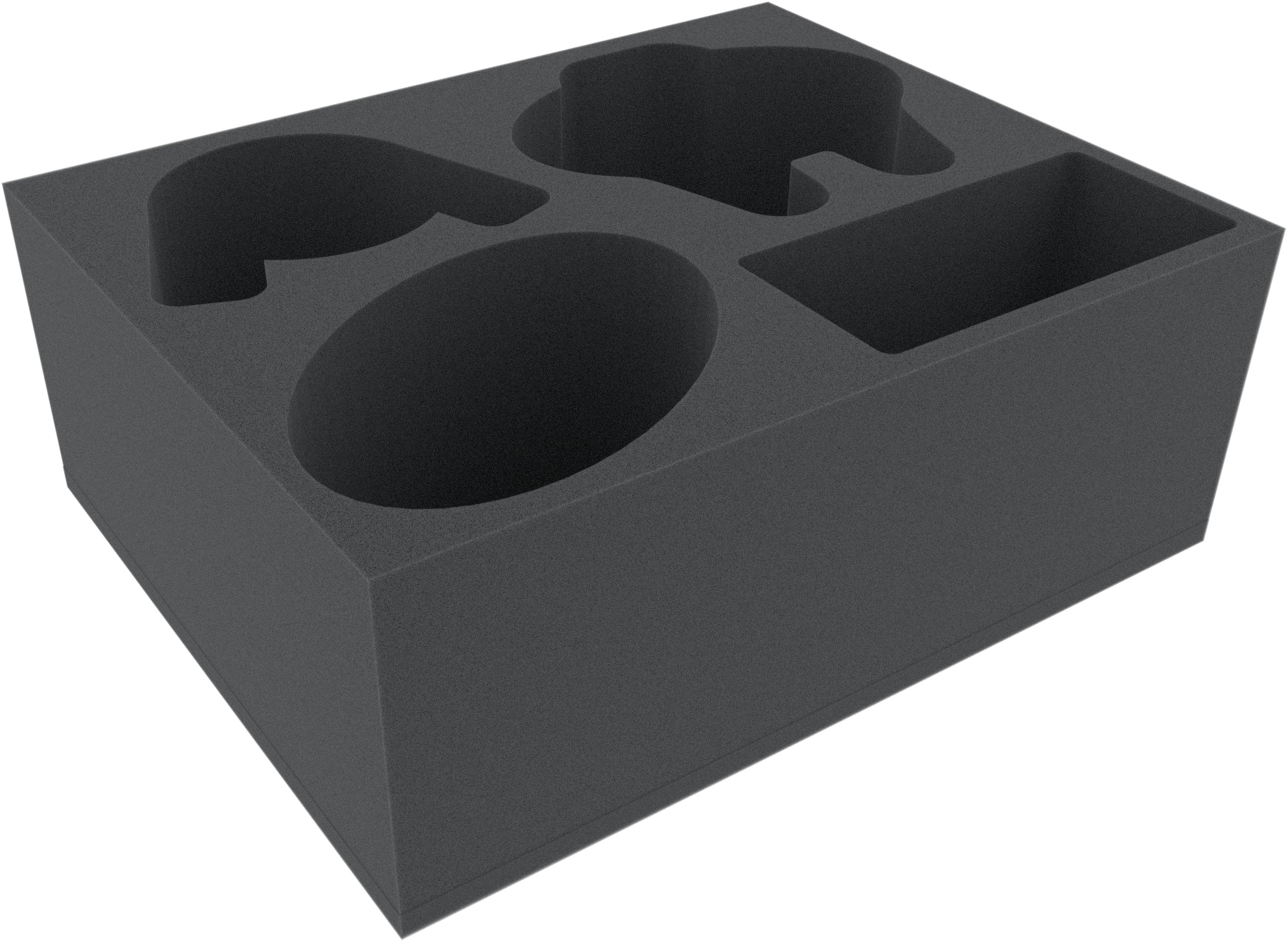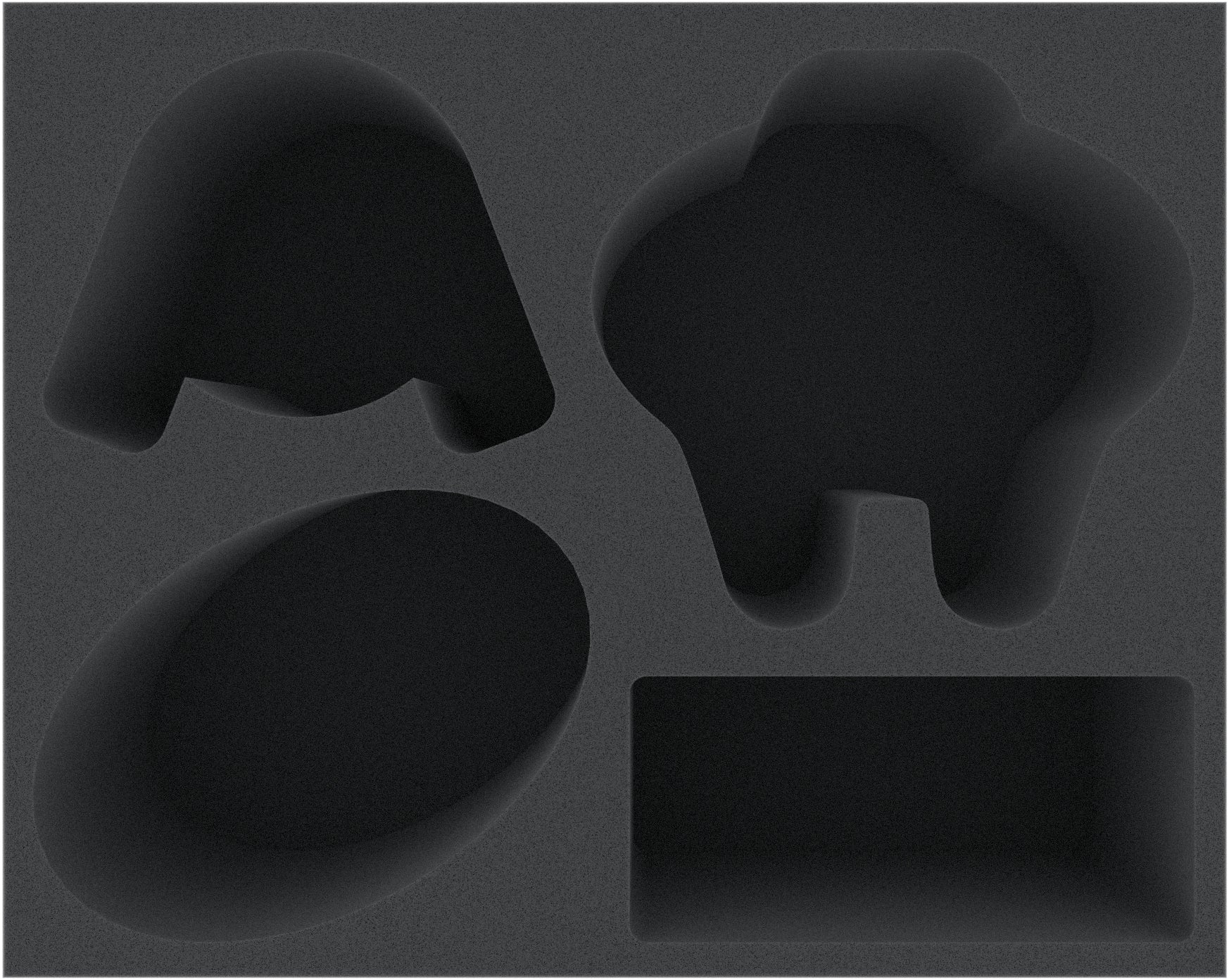 The tray is divided into 4 individually tailored compartments. One large model (e.g. Knight Castellan, Knight Preceptor Canis Rex or Knight Valiant) can be safely stowed here in two parts - upper part with weaponry and lower part with legs. Surrounded by foam, the sensitive parts of the miniature are well protected, even during transport.