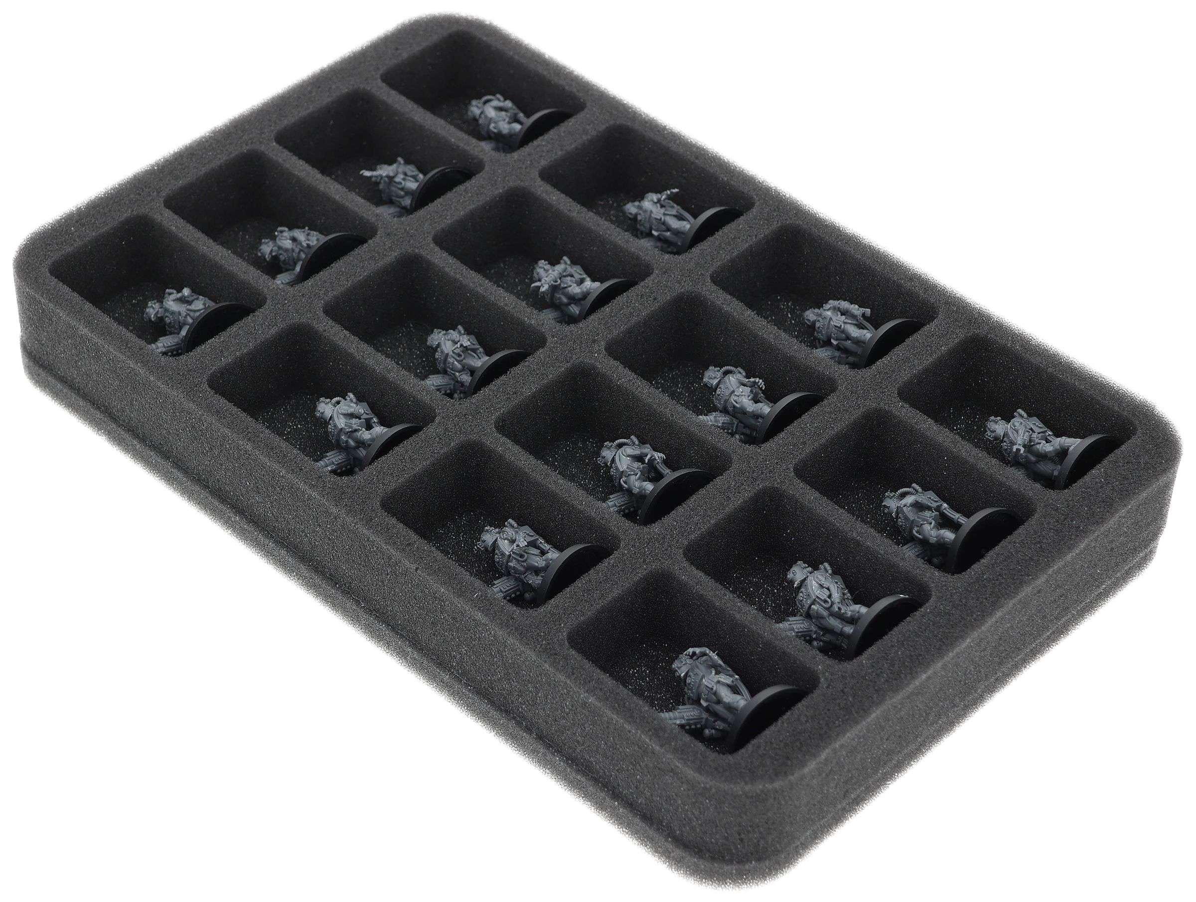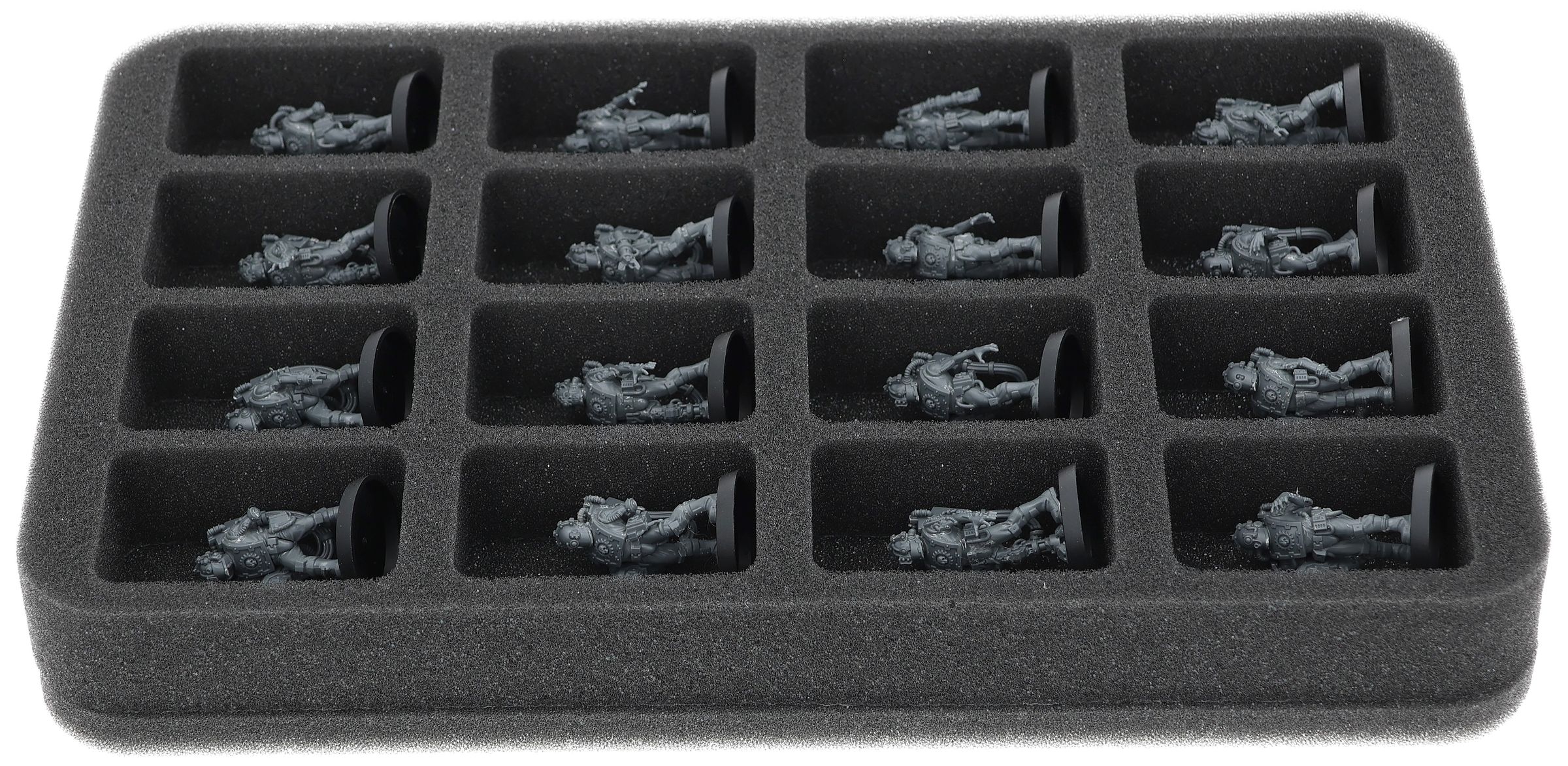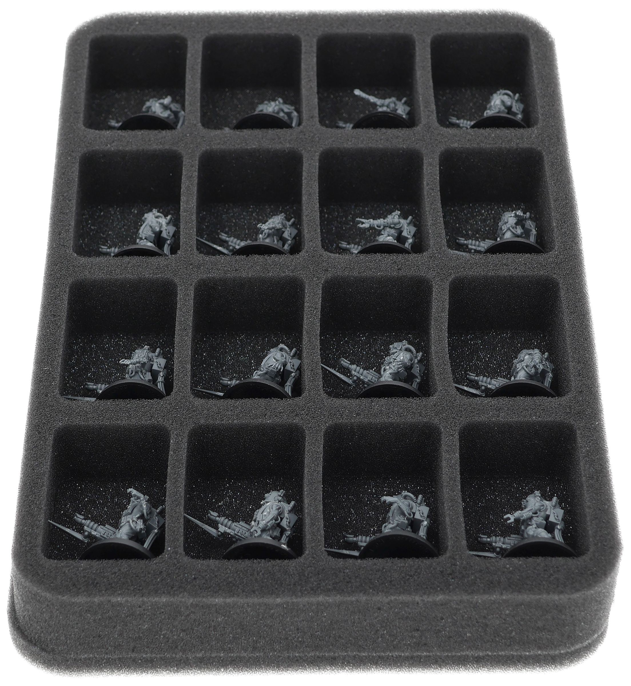 On this Feldherr foam tray you have space for up to 16 miniatures of your army. The insert is especially suitable for storing the Adsecularis-Tech-thralls and similar sized models.