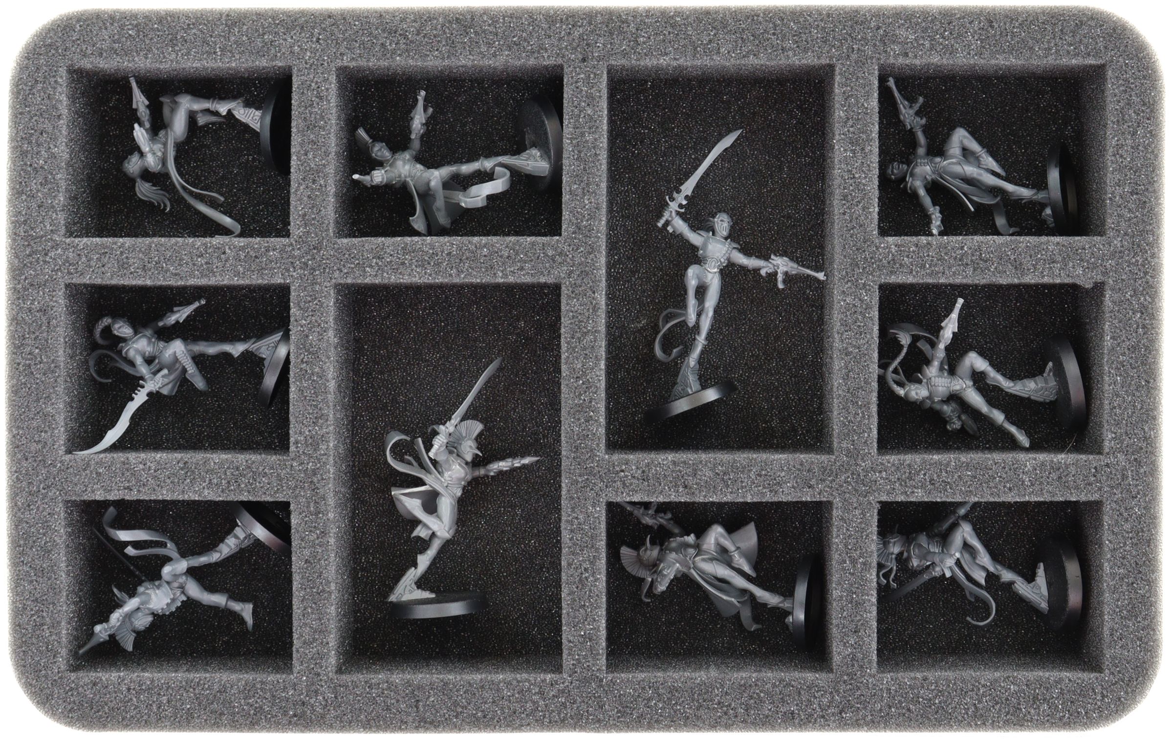 - 2 Half-Size foam trays, each with 10 compartments for bulky miniatures such as Shadowseer, Death Jester, Solitaire, Harlequin Troupe and models with similar dimensions (HS045A029)