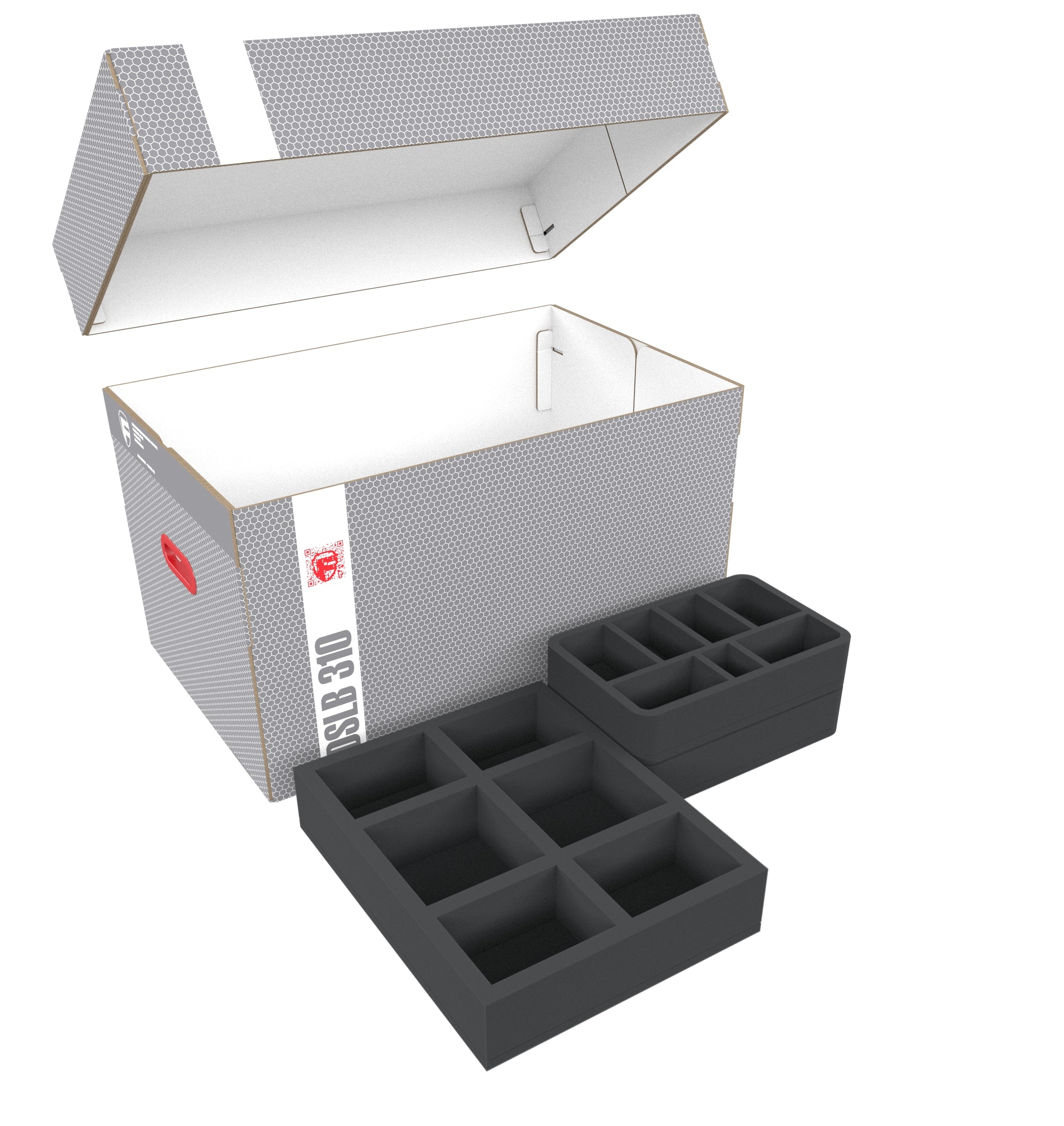 In this sturdy storage box DSLB310 your miniatures are optimally protected. You can safely transport up to 148 warrior models to the battlefield in the custom Feldherr foam trays.
