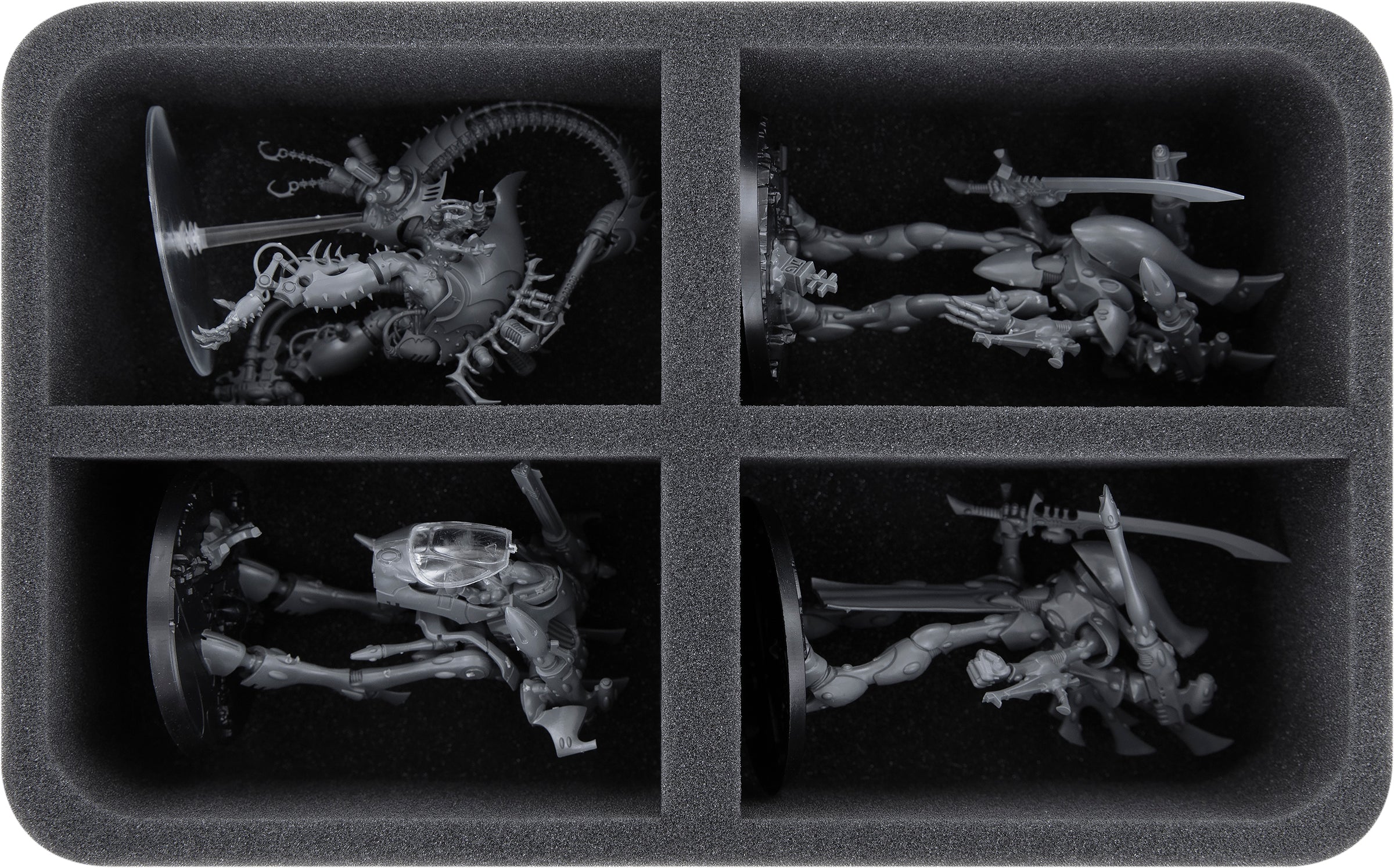 - 1 Half-Size foam tray with 4 compartments for large models like Wraithlord, War Walker, Cronos, and models with similar dimensions (HS080A014)