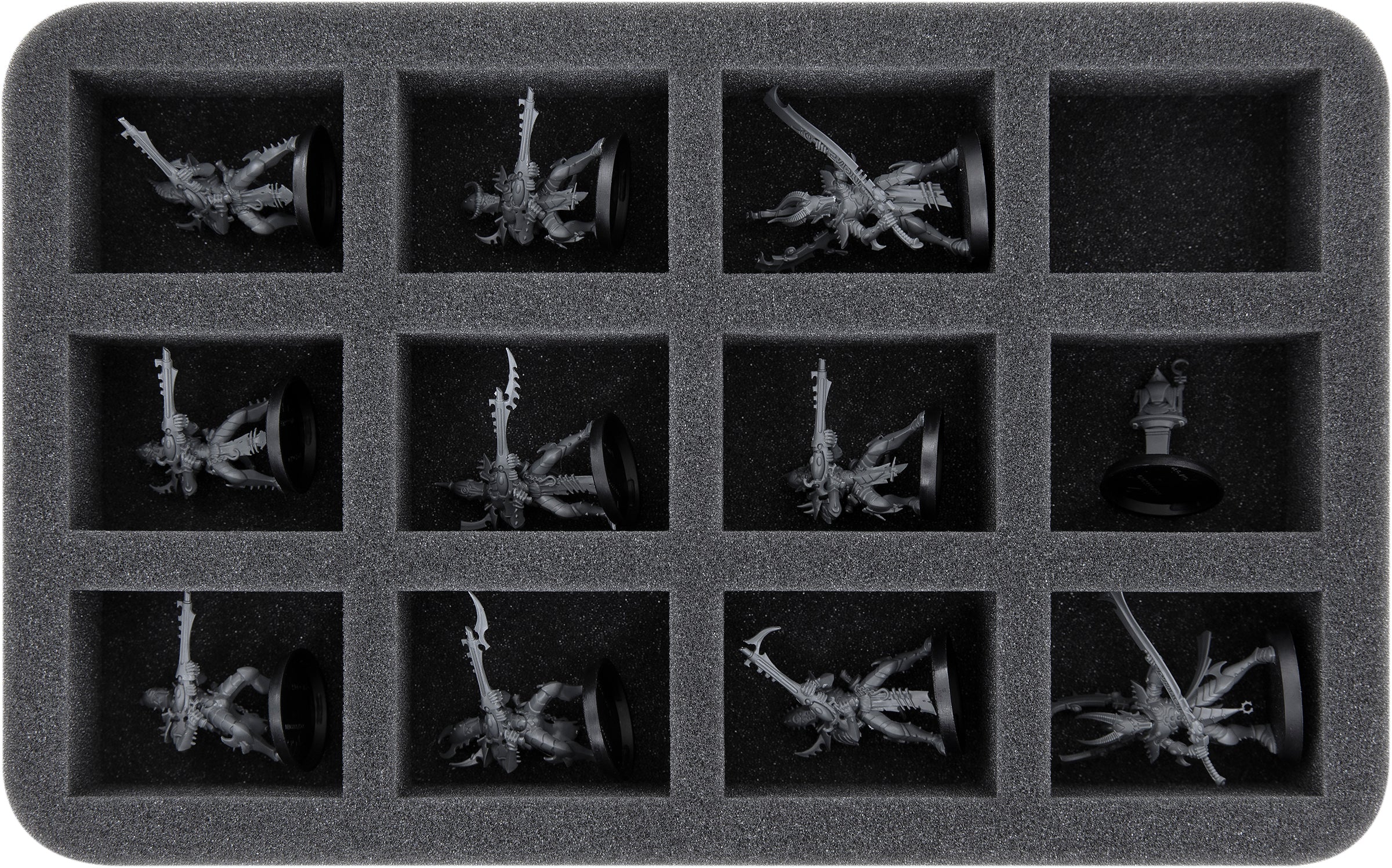 - 2 Half-Size foam trays with each 12 compartments for standard infantry such as Storm Guardians, Guardian Defenders, Rangers and models with similar dimensions (HS040A026)