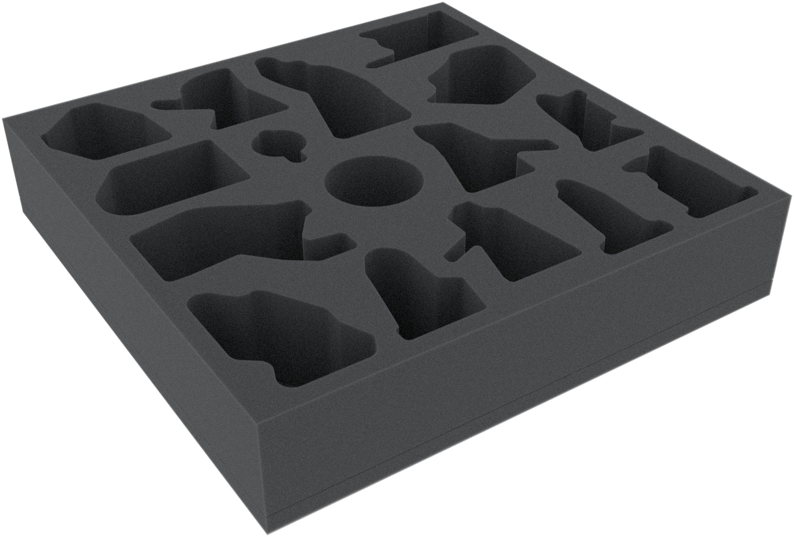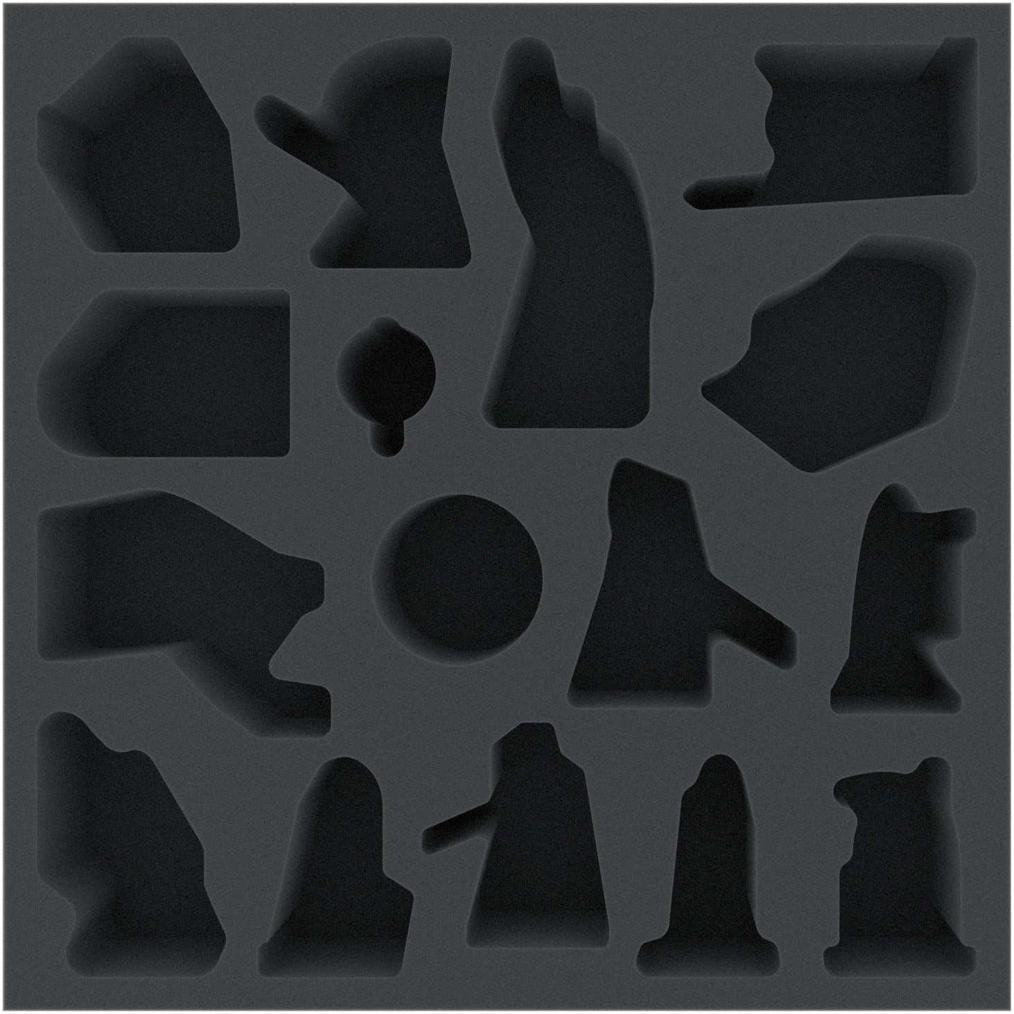 This Feldherr insert takes care of the large miniatures from the Physical Viking Pledge. From the Mountain Giantess to Tyr and Wolfwoman - every monster and God of Asgard is assigned its own tailor-made compartment. For Odin and his throne there are three compartments available. So you can store him either sitting in on his throne one compartment, or keep the throne and Odin separately in two custom-cut compartments.
