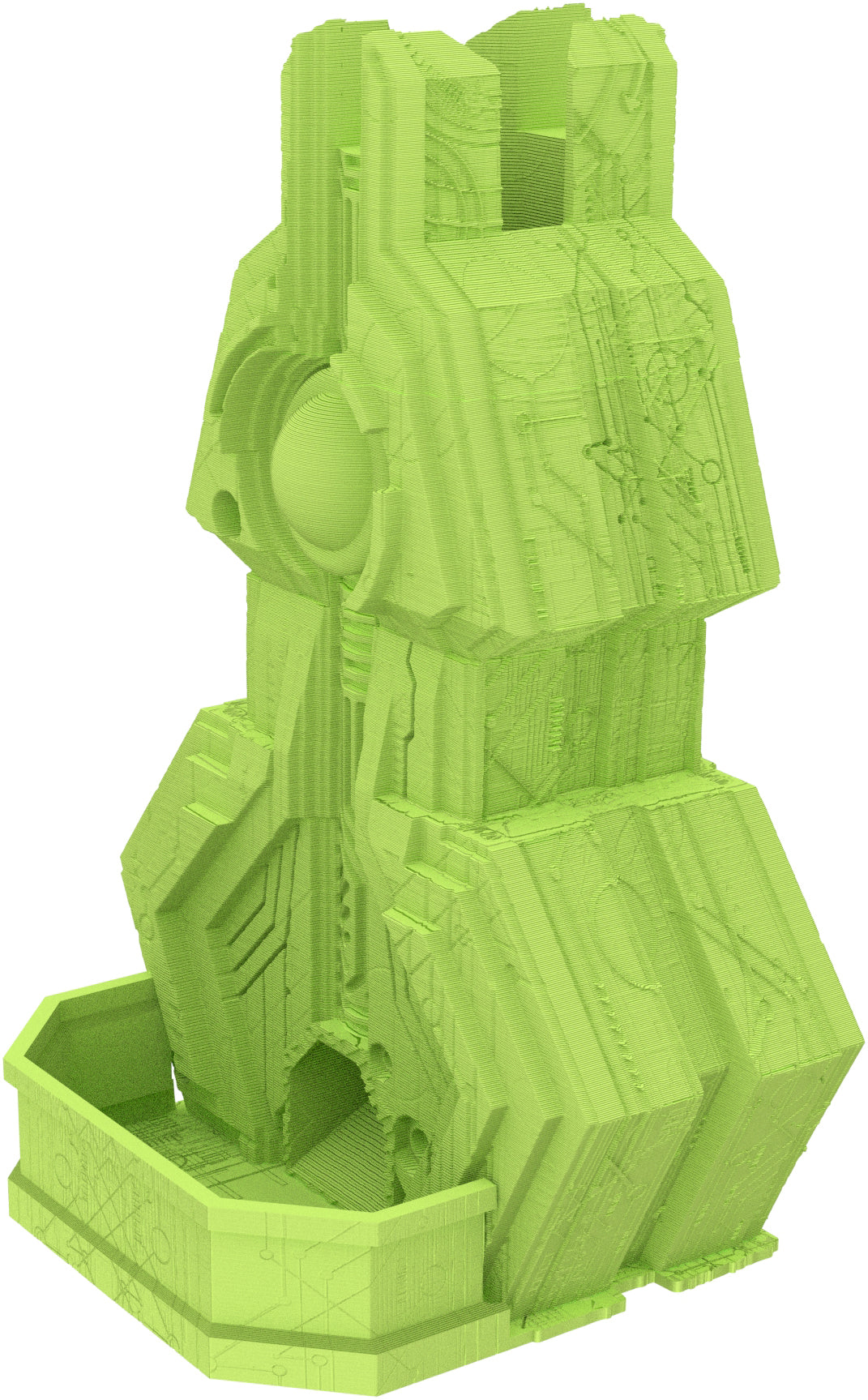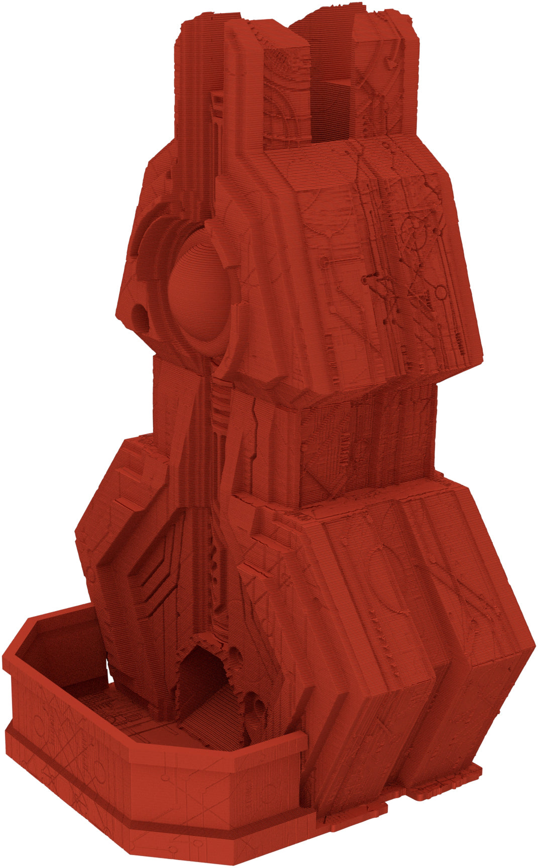 3D printed - detailed dice tower, with removable roof and exchangeable dice tray. The Dice Tower can also be used as a terrain part for your miniatures game or as a center piece for your next DnD session.