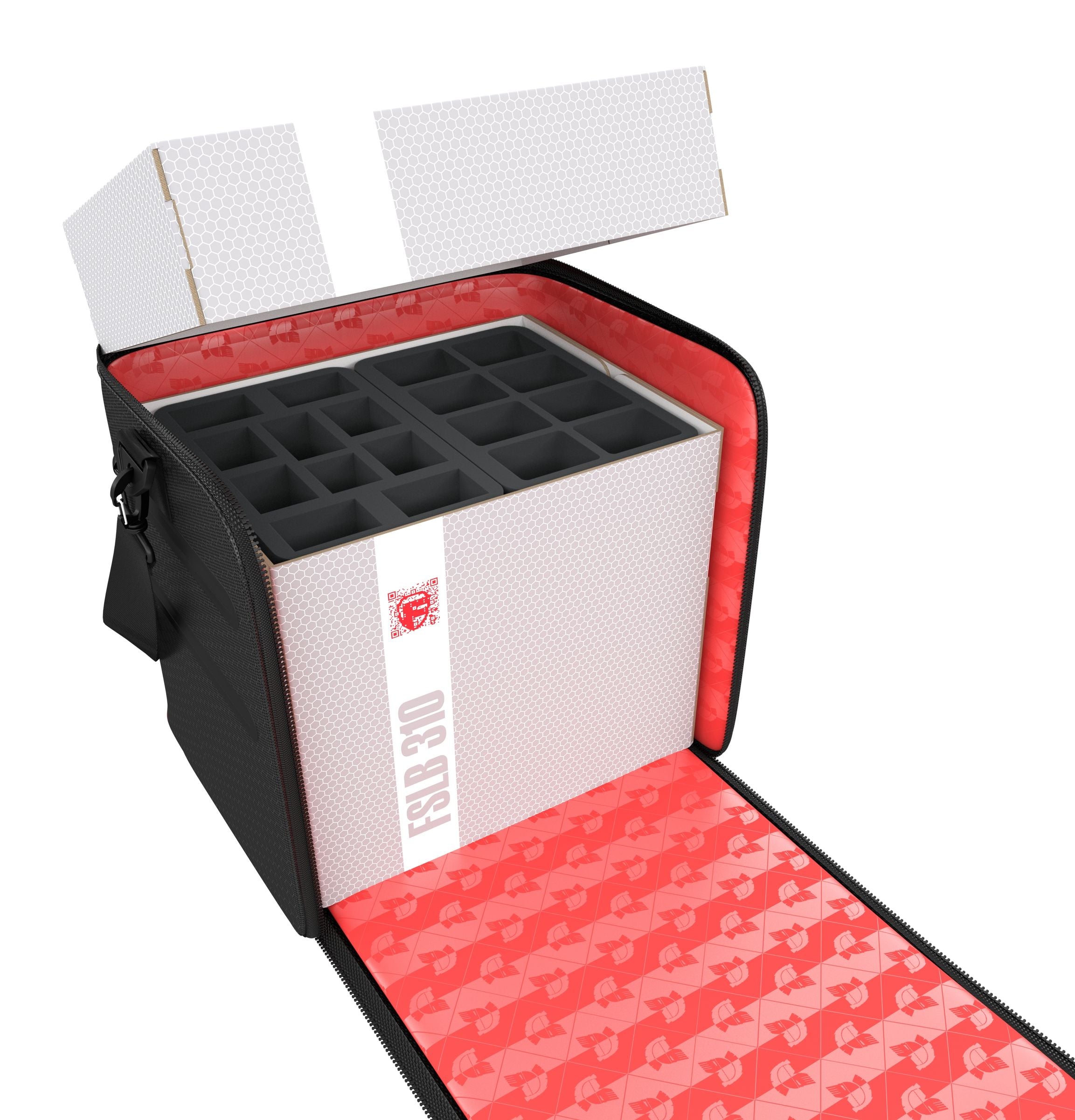 This Storage Box FSLB310 is intended exclusively for storing and transporting the miniatures. Bigger game components, like the rulebook, or the game board do not fit into the Storage Box and have to be transported separately in the bag.