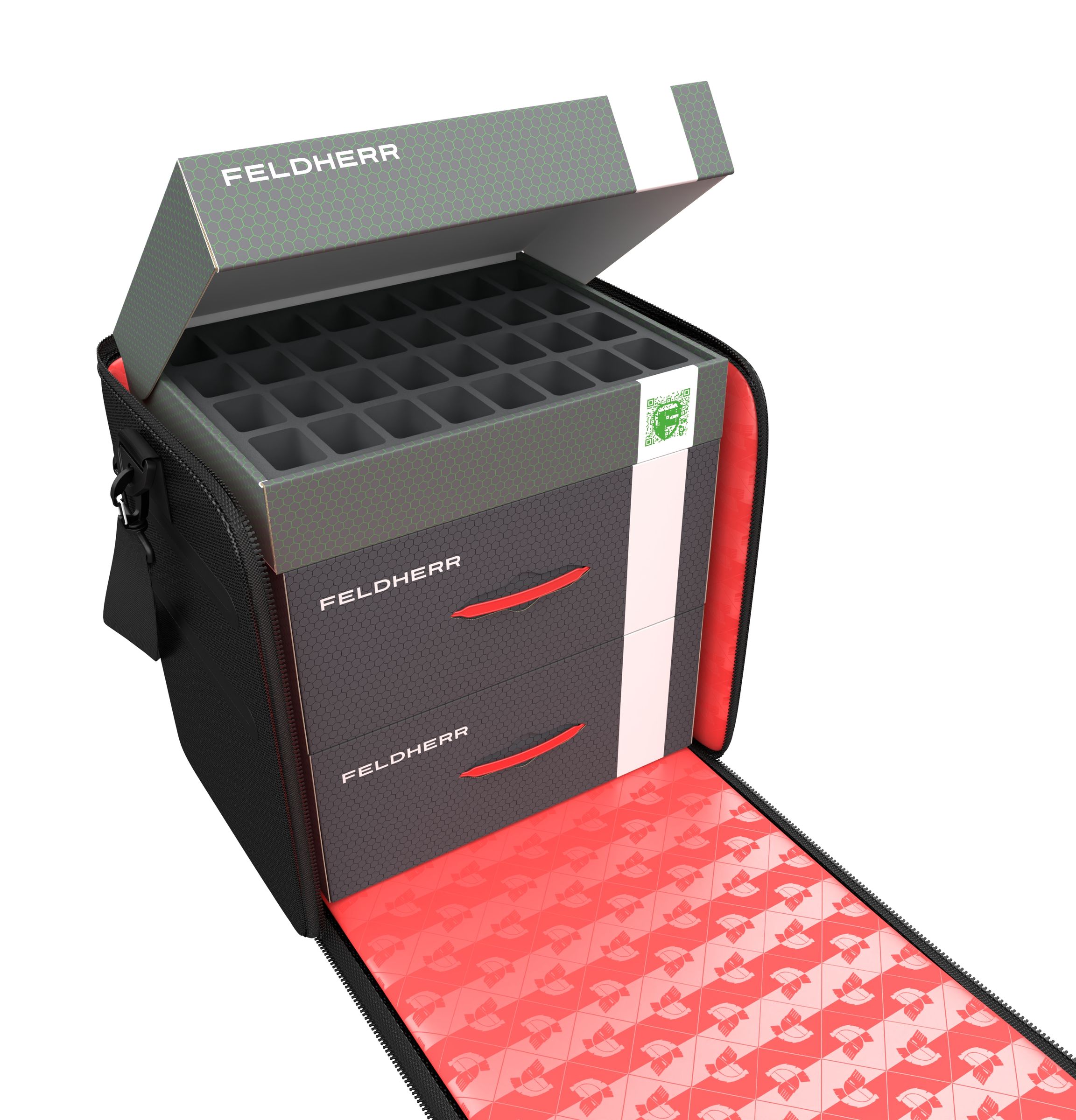 In this spacious GENERAL 370 bag your miniatures are optimally protected. You can safely transport up to 95 warrior figures to the battlefield in the custom Feldherr foam trays.