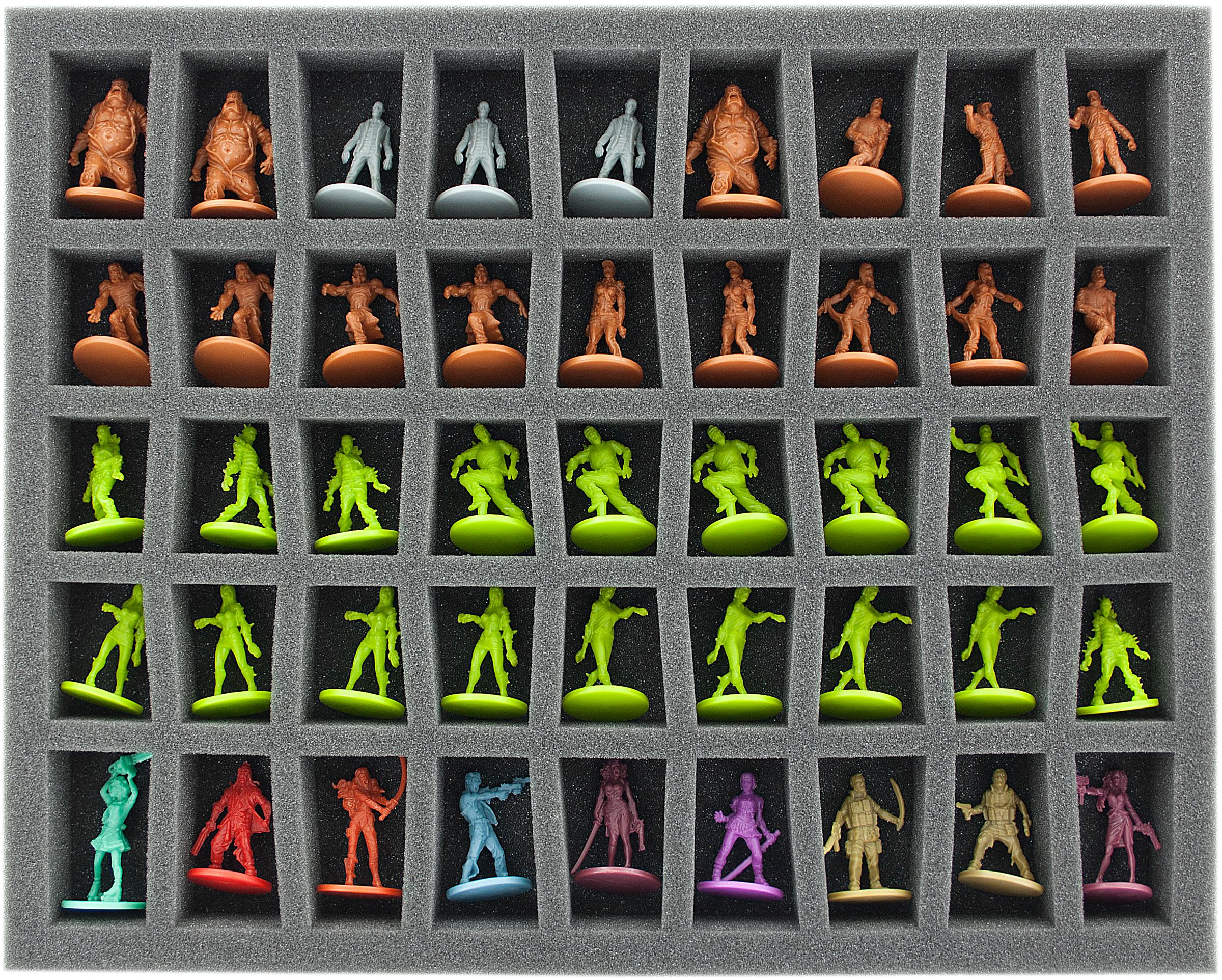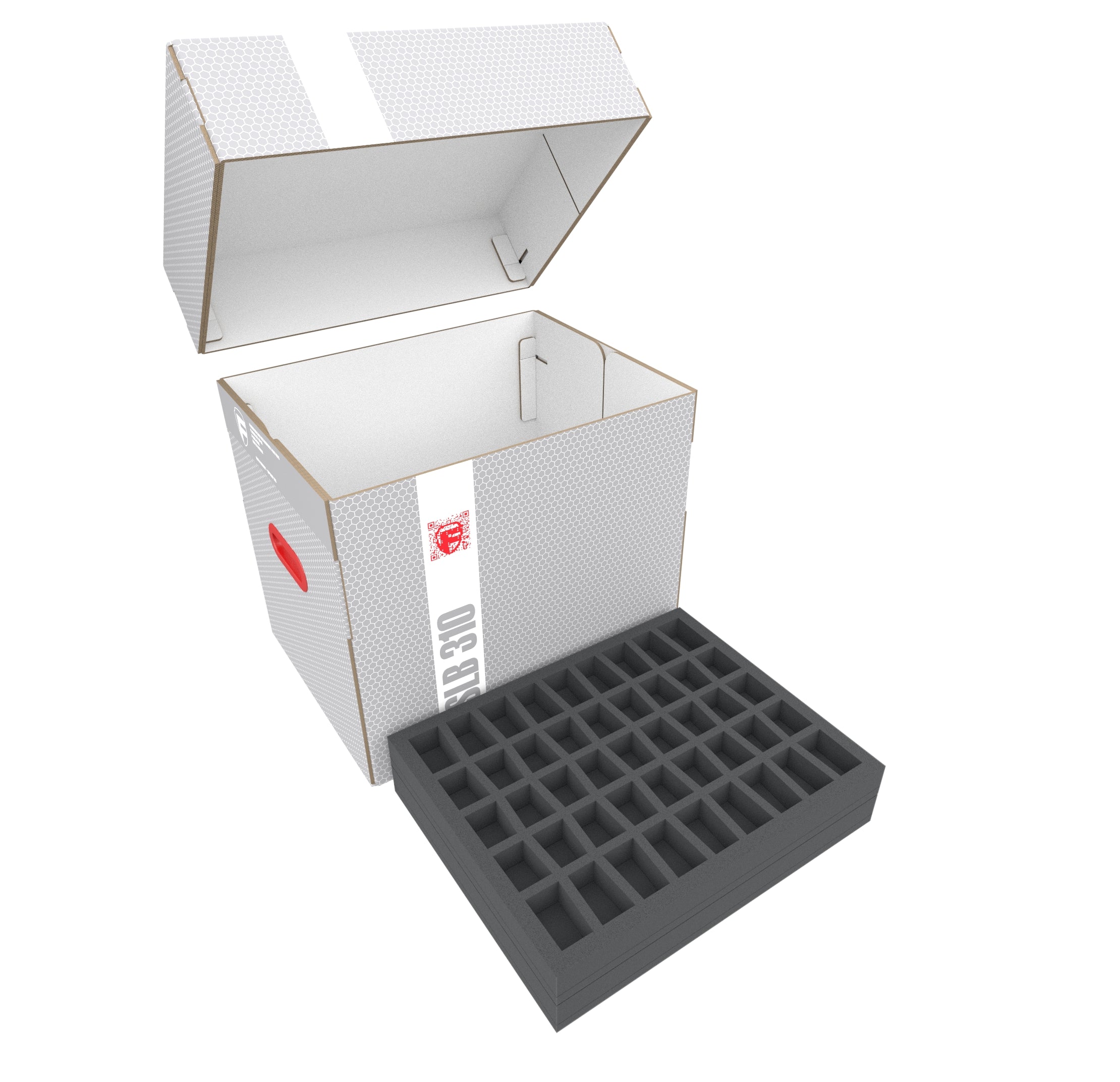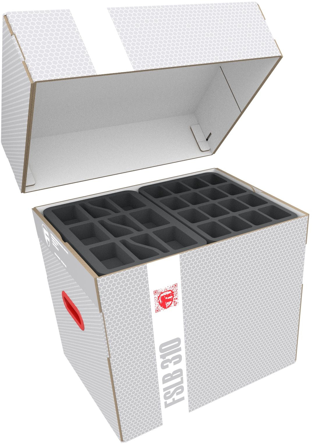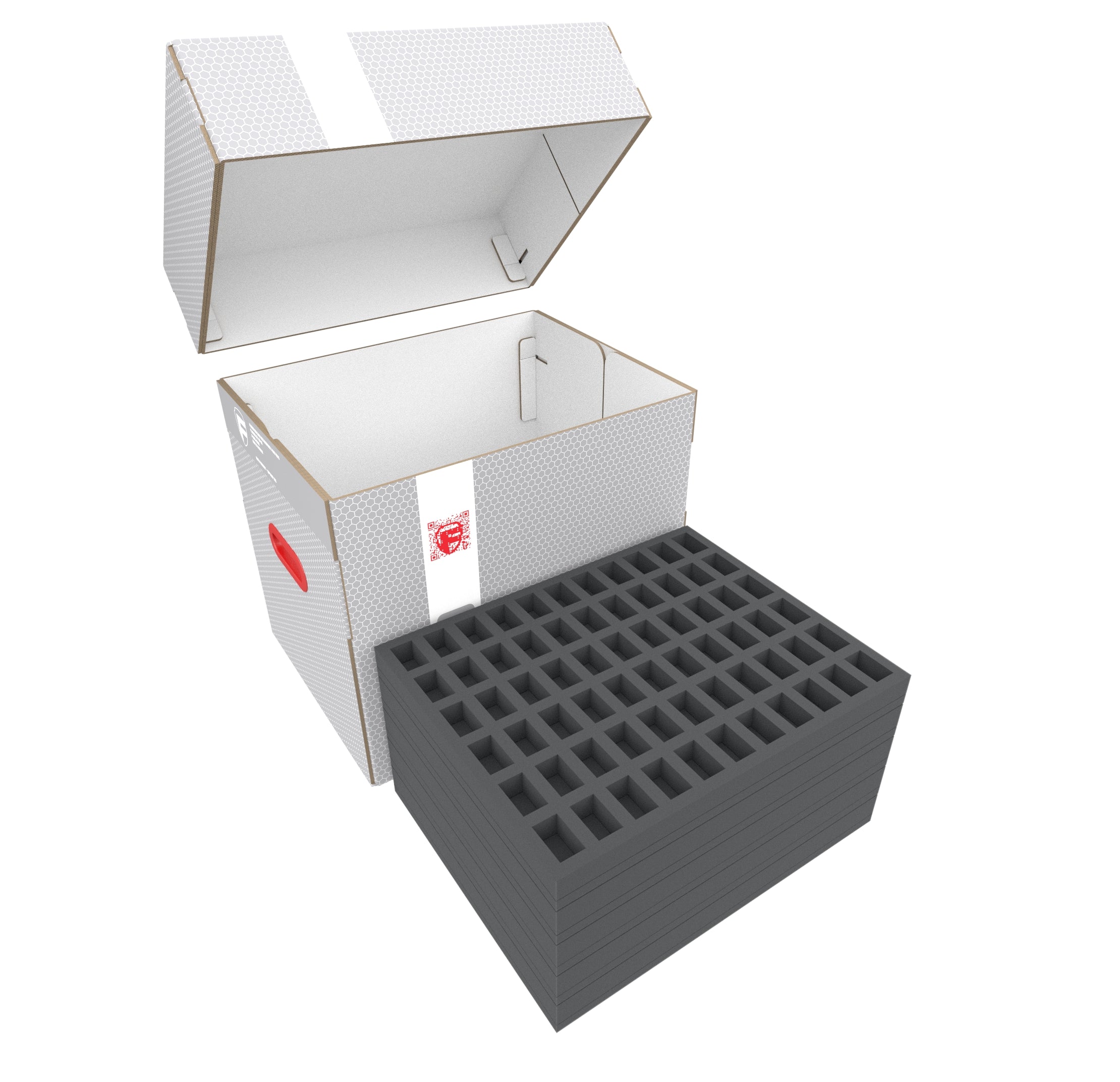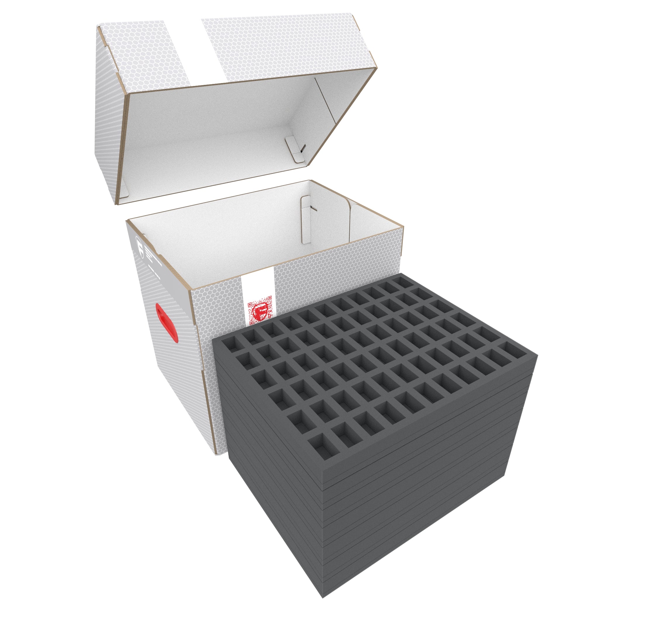 - 2 Full-Size foam trays with 25 compartments each for bulky 20 mm tabletop figures such as Templar Knights and cannons of the French Imperial Guard, as well as models with similar dimensions (FS035A030)