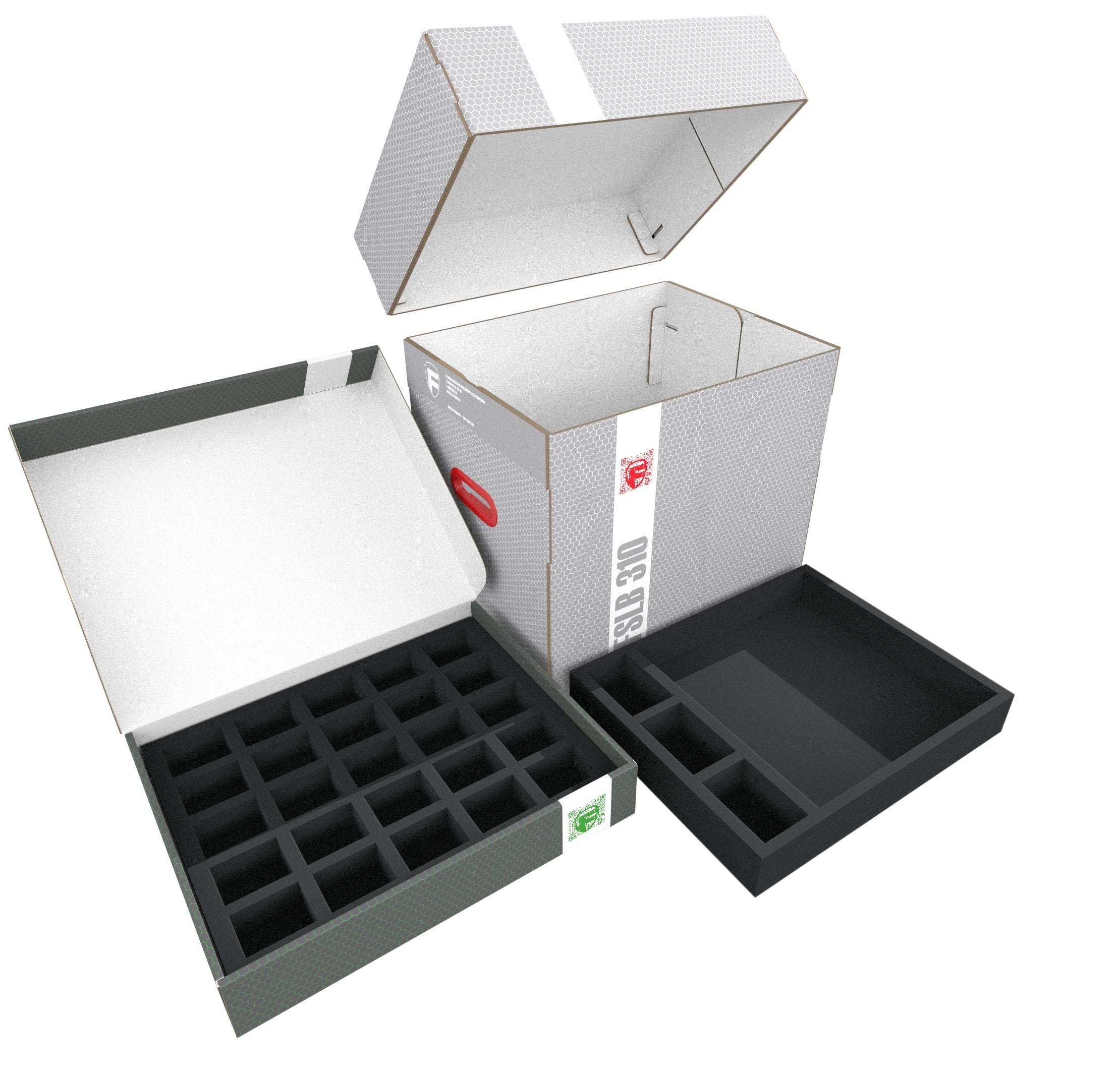 - 2 Half-Size foam trays, each with ten compartments for bulky infantry like Dire Wolves + models of similar size (HSBE050BO)