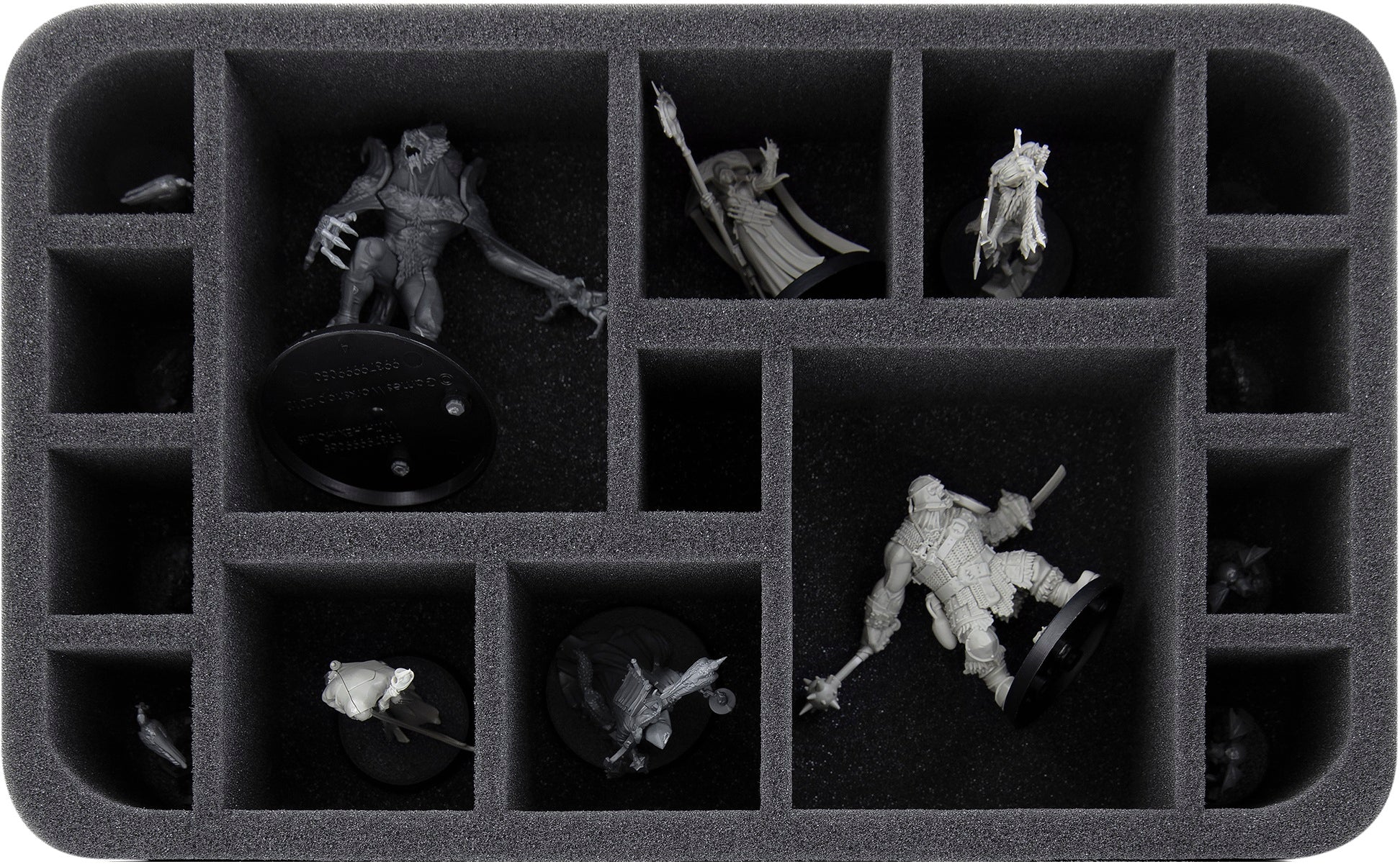 The custom-fit cut helps with sorting and ensures that nothing slips around during transport. The many filigree details of the miniatures are thus reliably protected from damage. If you have painted your models, you can be sure that the colors will remain intact even after transport.