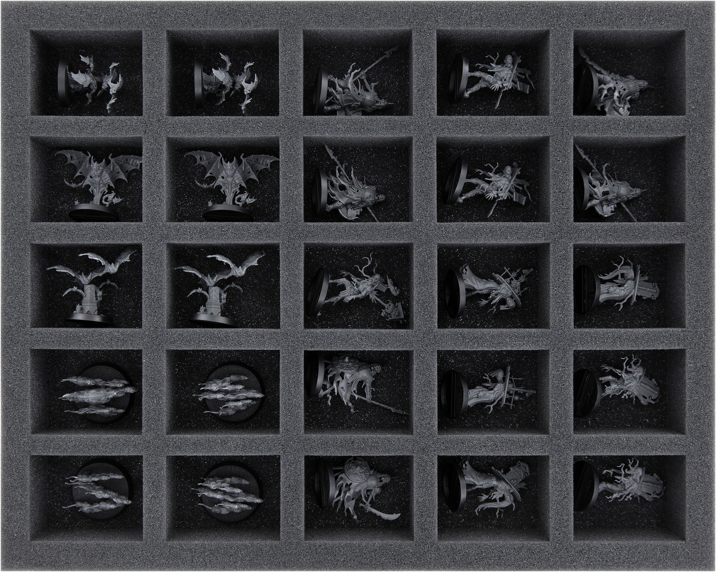- 1 Full-Size foam tray with 25 compartments for standard infantry like Deadwalker Zombies and similar-sized models (FSLQ040BO)