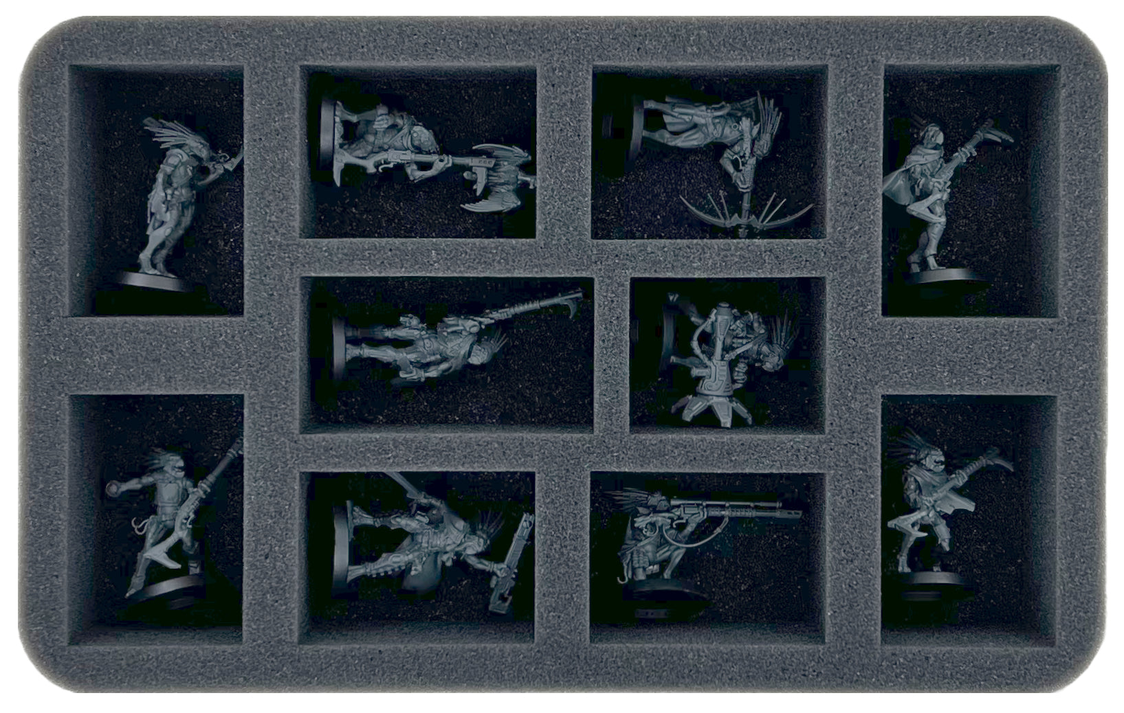 - 1 Half-Size foam tray with ten compartments for models of the Kroot Farstalker Kindband Kill Team(HSLM050BO)