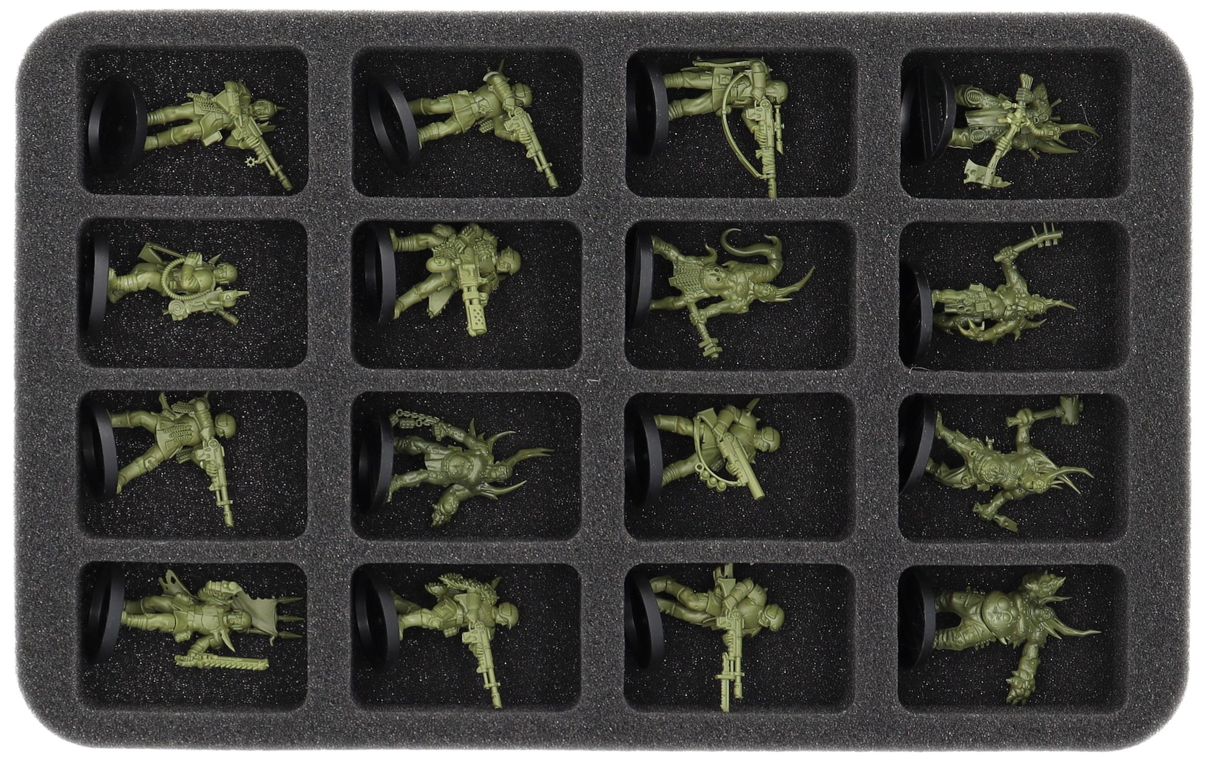 - 1 Half-Size foam trays with 16 compartments for miniatures like Pox Walkers, Traitor Guardsmen and miniatures with similar dimensions (HS035BF05BO)