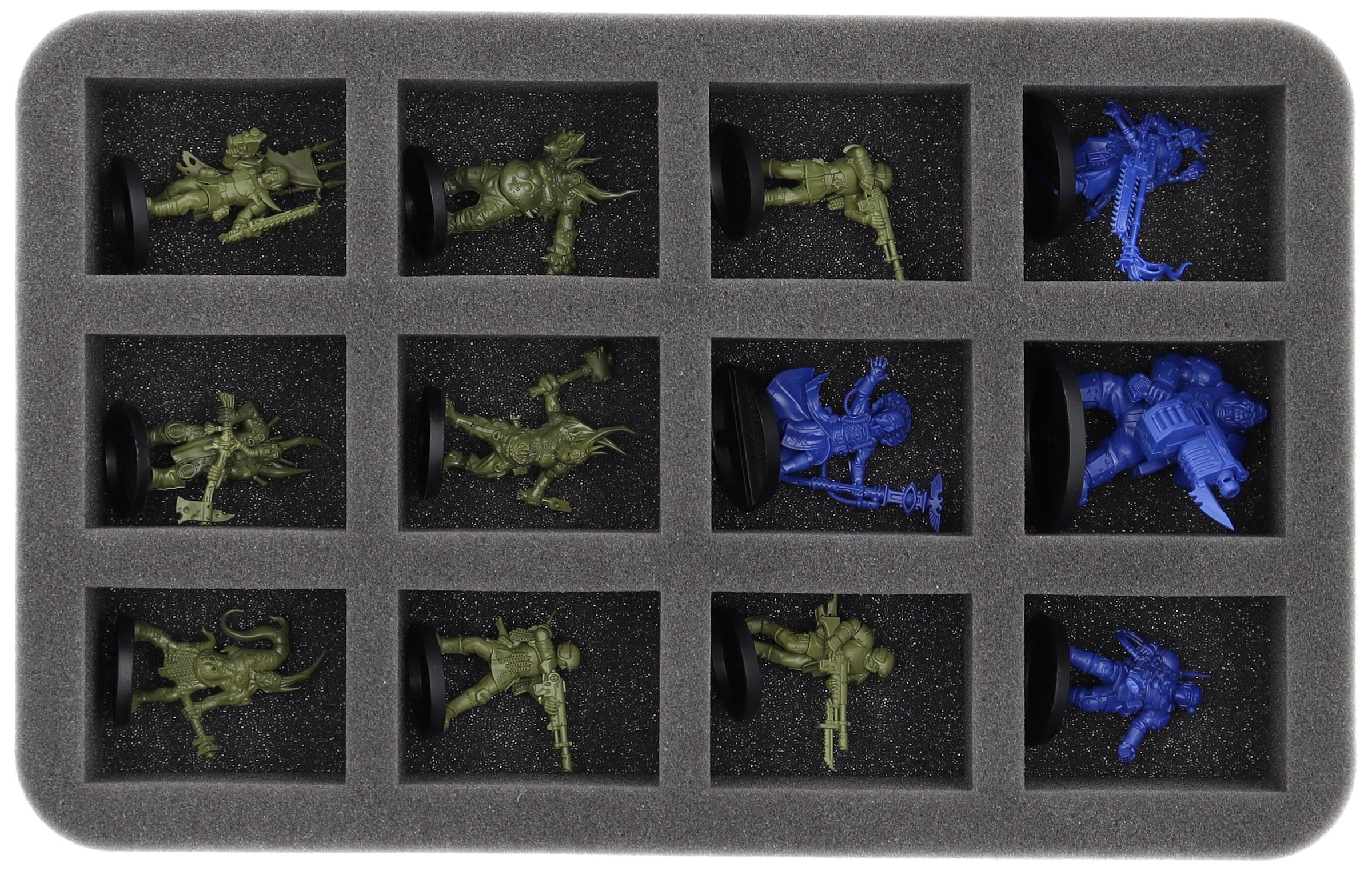 - 1 Half-Size foam trays with 12 compartments for miniatures like Pox Walkers, Traitor Guardsmen and miniatures with similar dimensions (HS050I012BO)