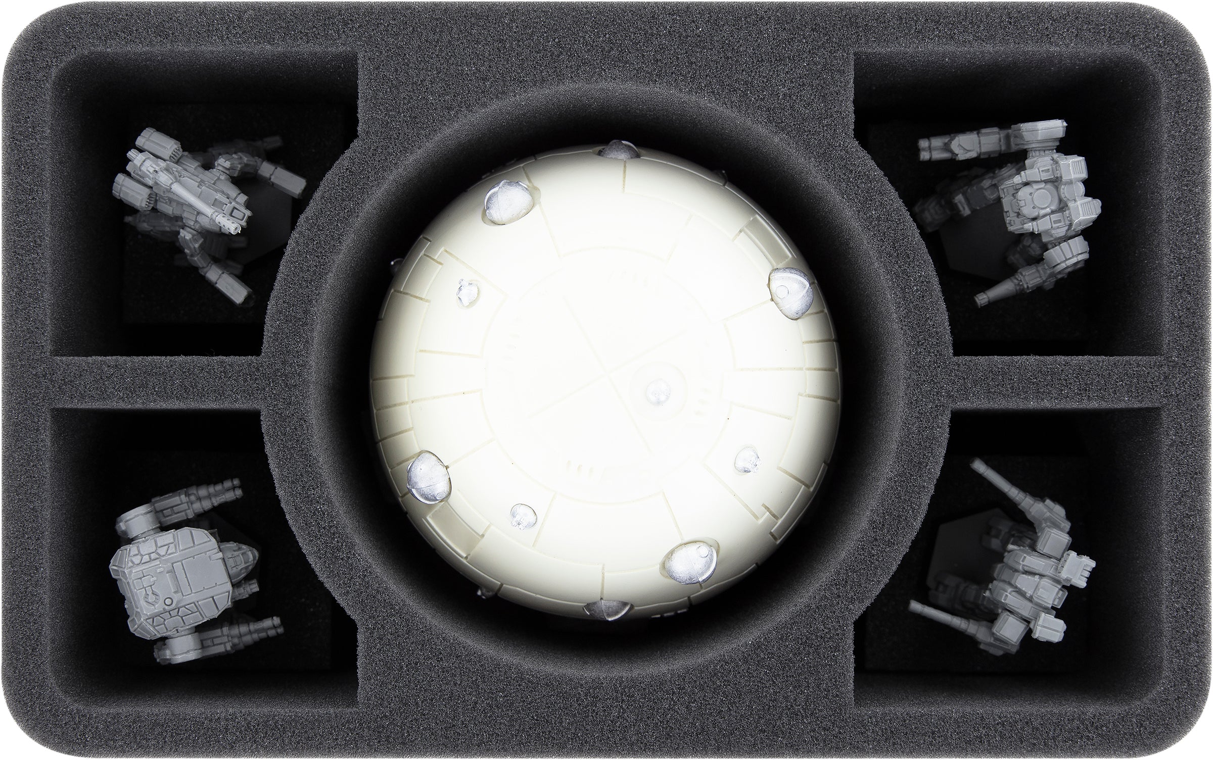 - 1 Half-Size foam tray for 1 Fortress-class Assault Dropship and 4 Mechs (HSMEJX110BO)