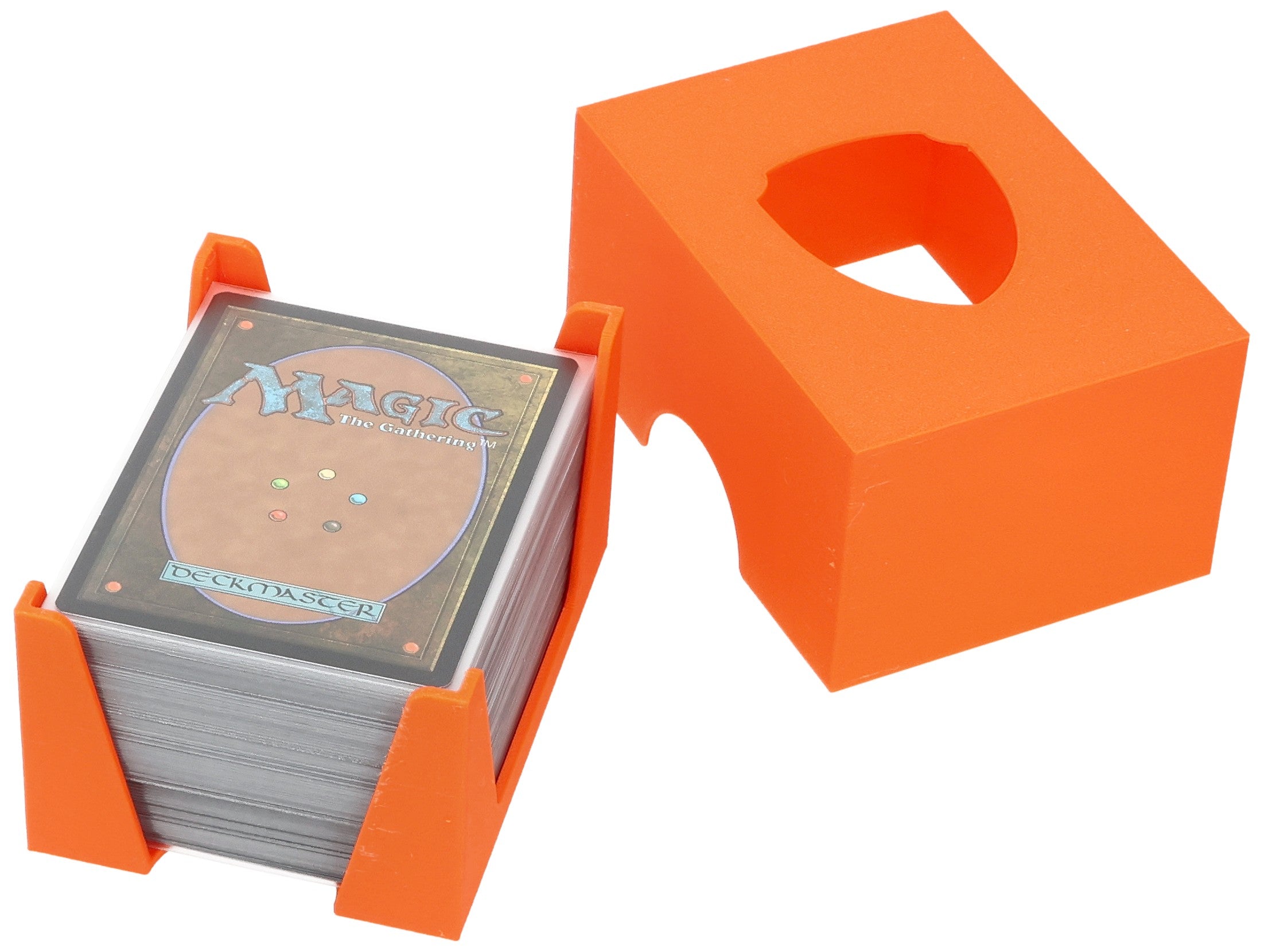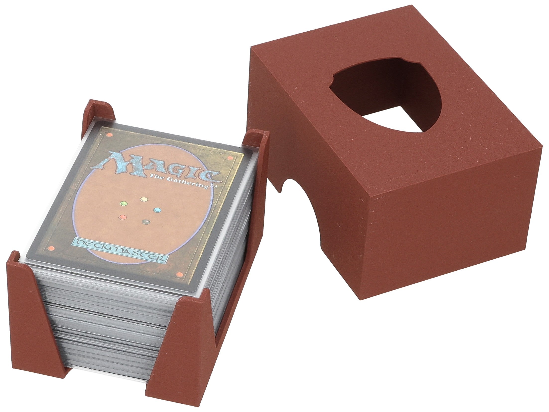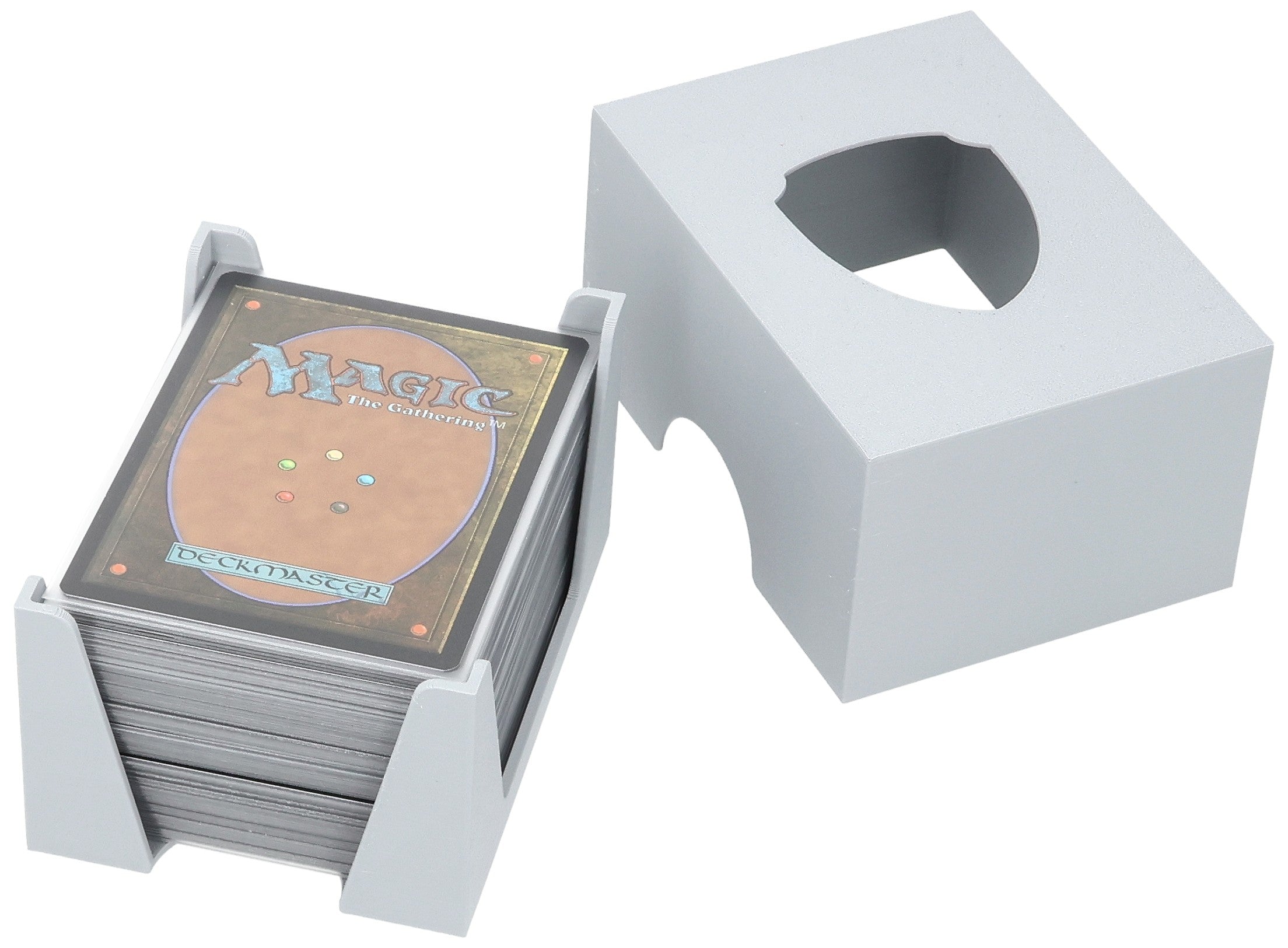 The Feldherr card deck holder with lid is your solution! Put the lid on the card holder, and you will have a space-saving, sturdy card box. It safely protects your cards on the way to your friends, whether in your backpack or jacket pocket. The card holder ensures that everything is neat and tidy on the tabletop.