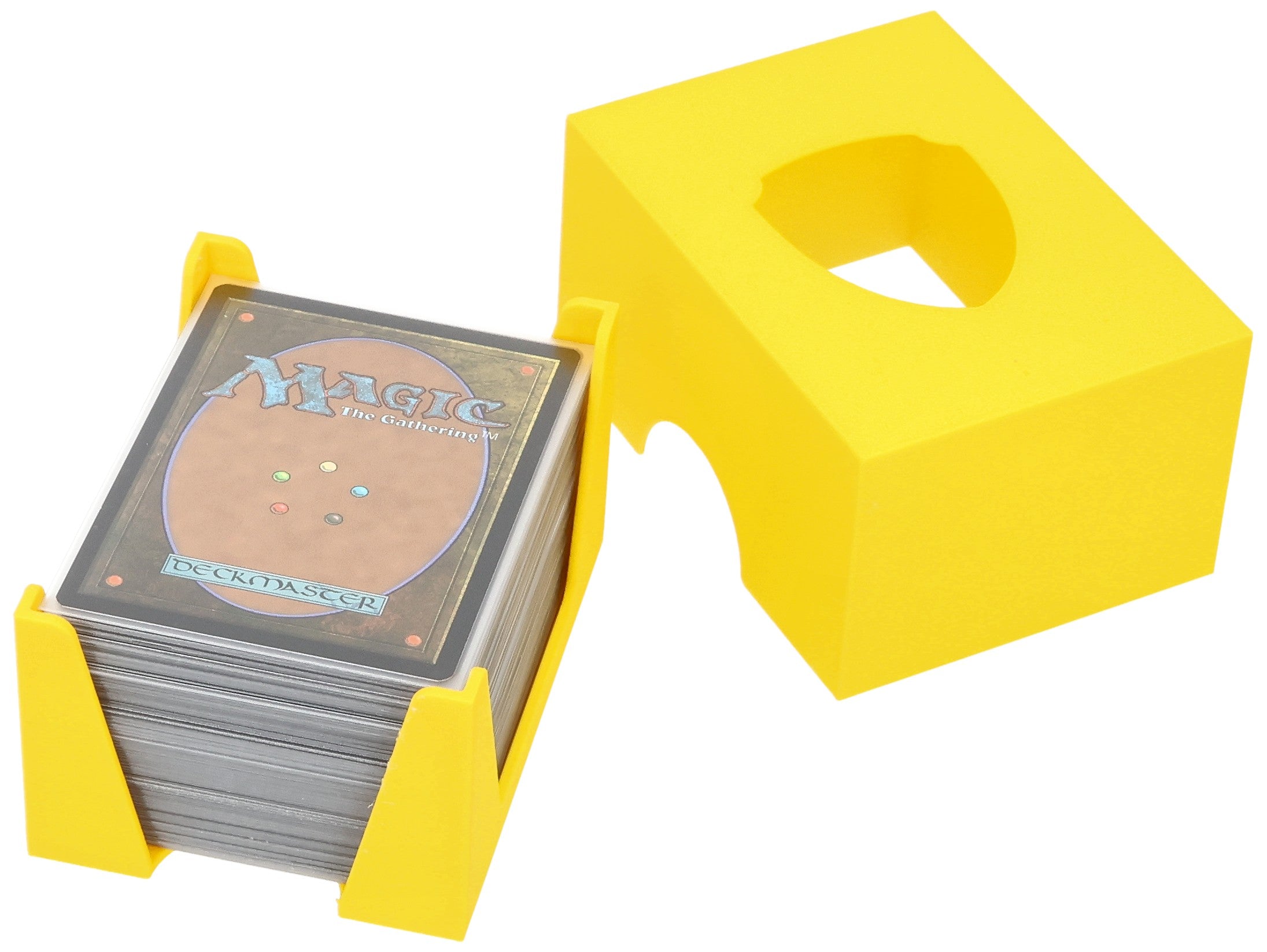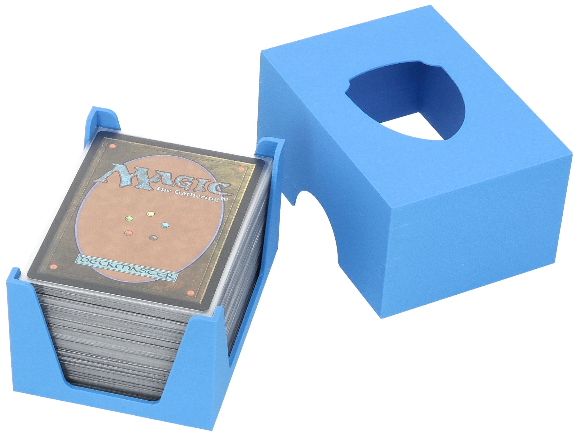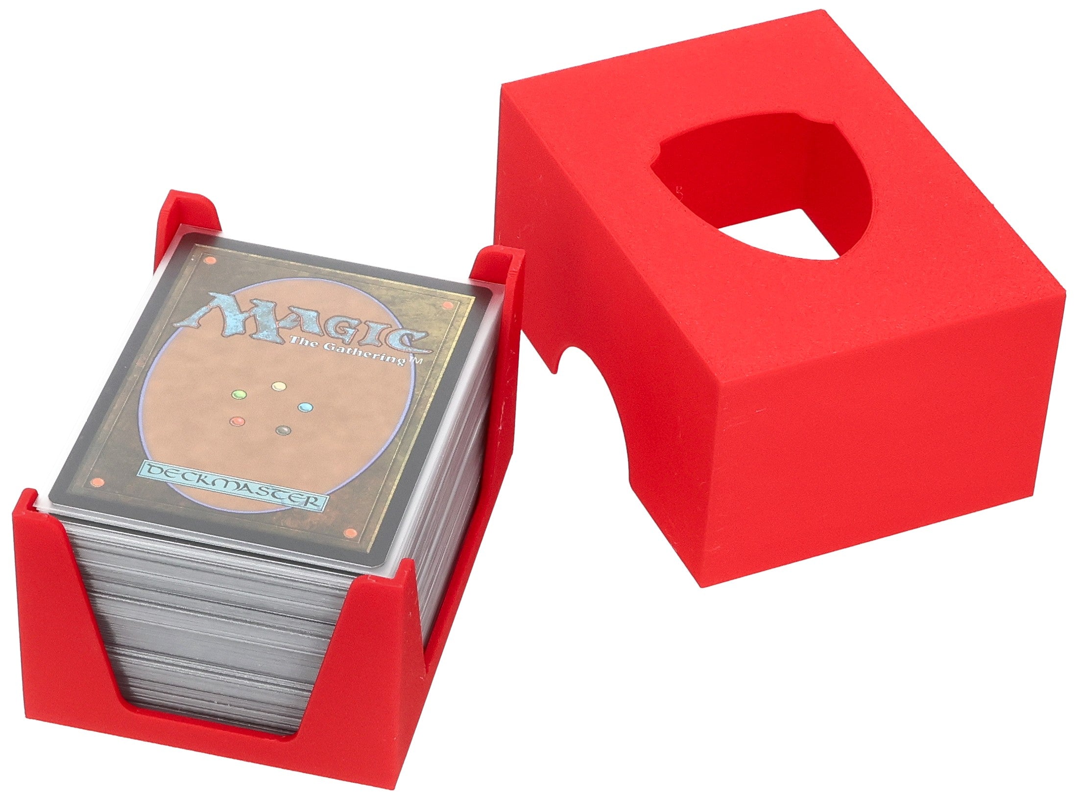 - The card holder provides a stable stand, ensuring that even cards with sleeves do not topple over during gameplay.