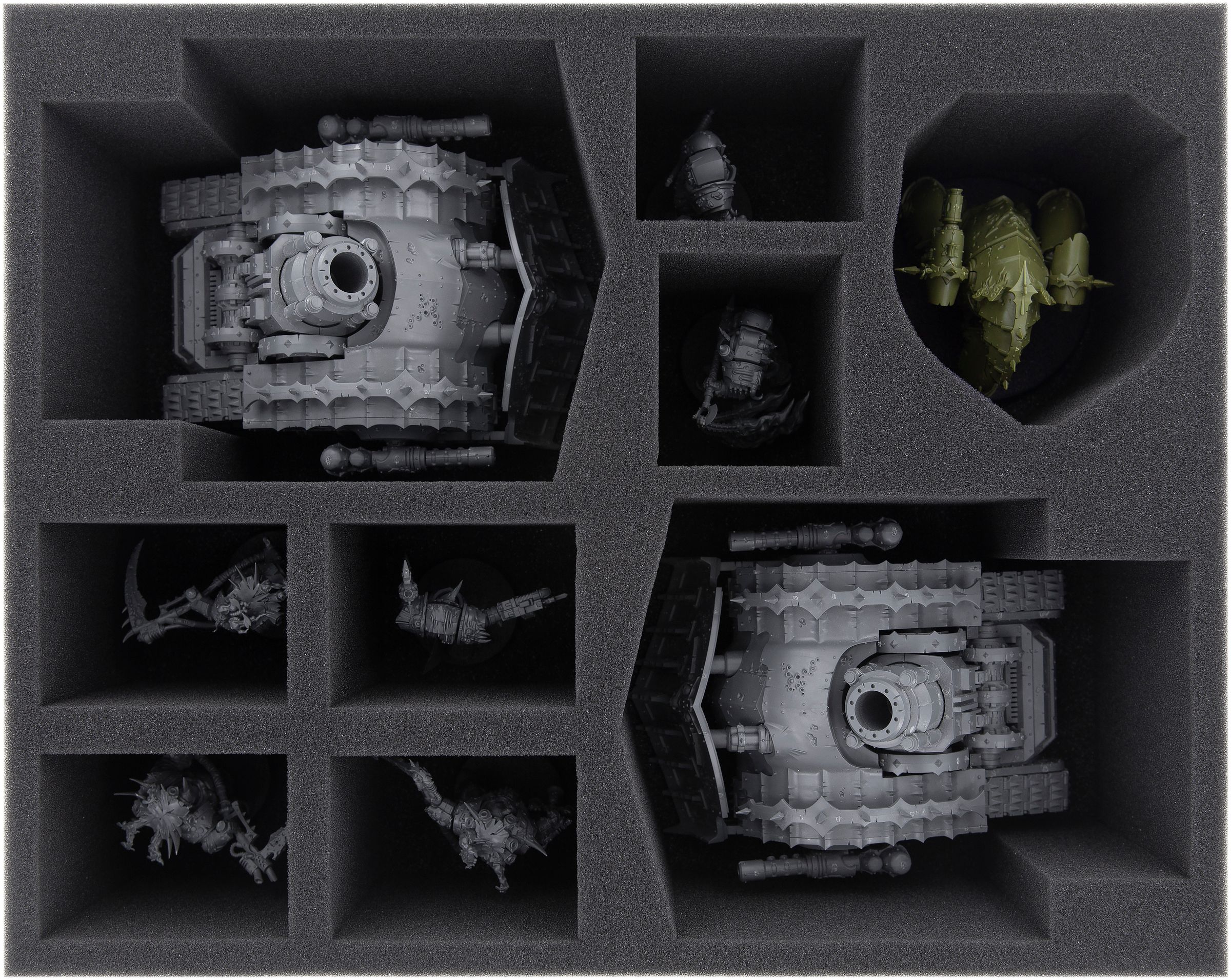 - 1 Full-Size foam tray for 2 Plagueburst Crawler + Myphitic Blight-hauler + 6 miniatures (FSMEFM090BO)
