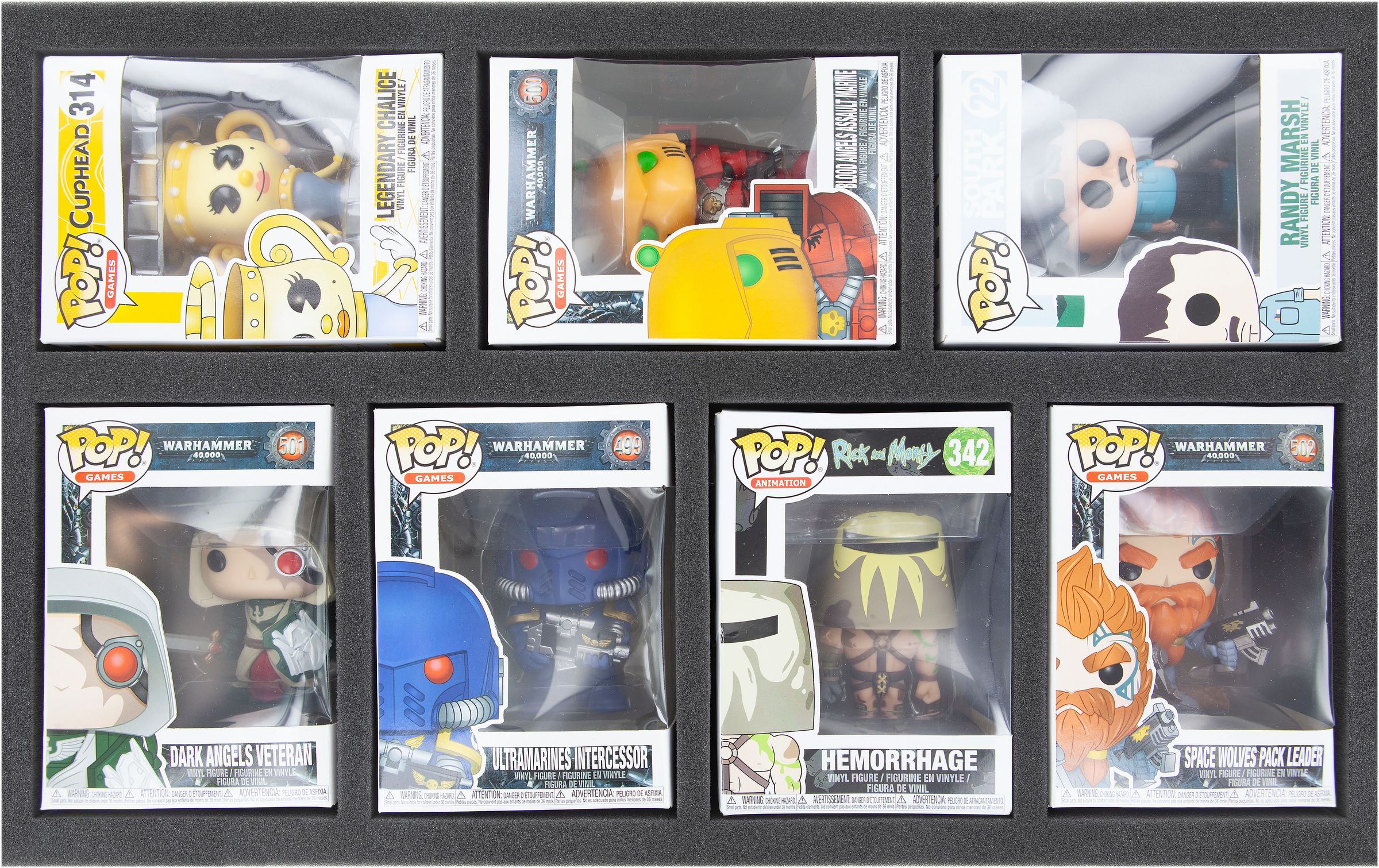 - 3 Double-Size foam trays each for 7 Funko POP! figures in box