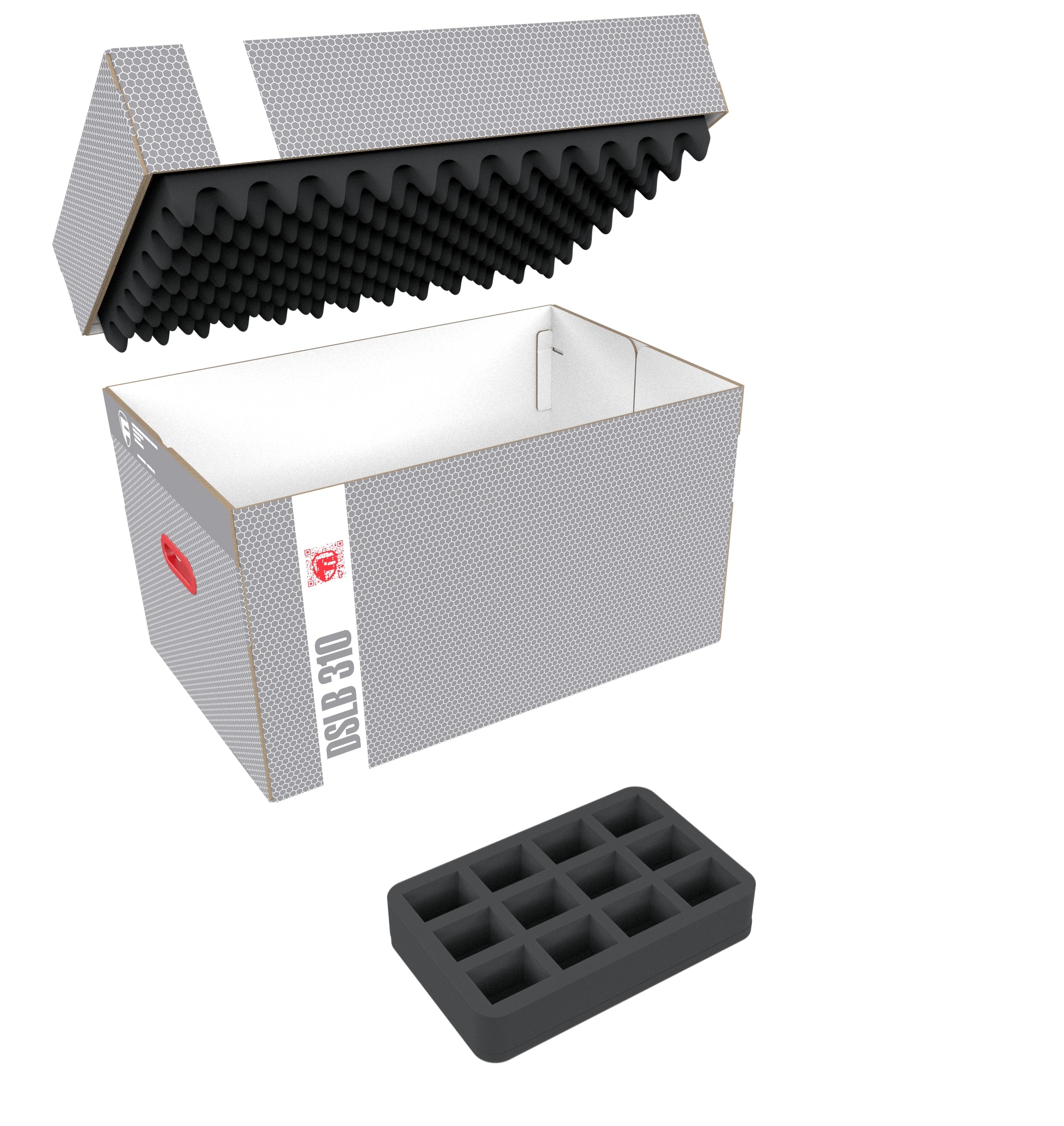 - 1 foam tray with 12 compartments for standard miniatures (HS050I012BO)