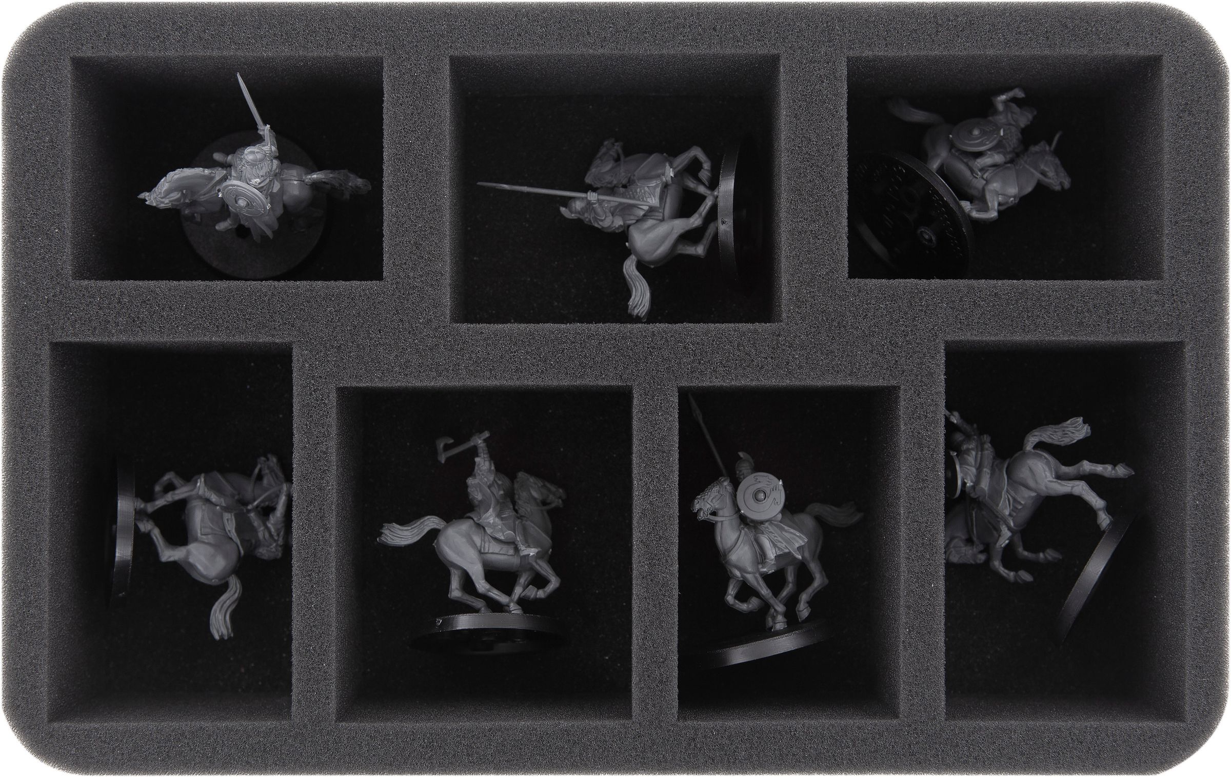 - The third insert with 2 round base-sized compartments provides a secure stand for the large figures and 34 compartments for warrior, rider and orc models.