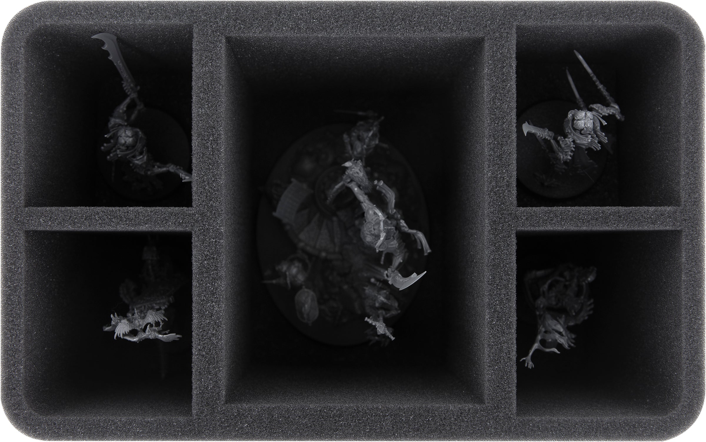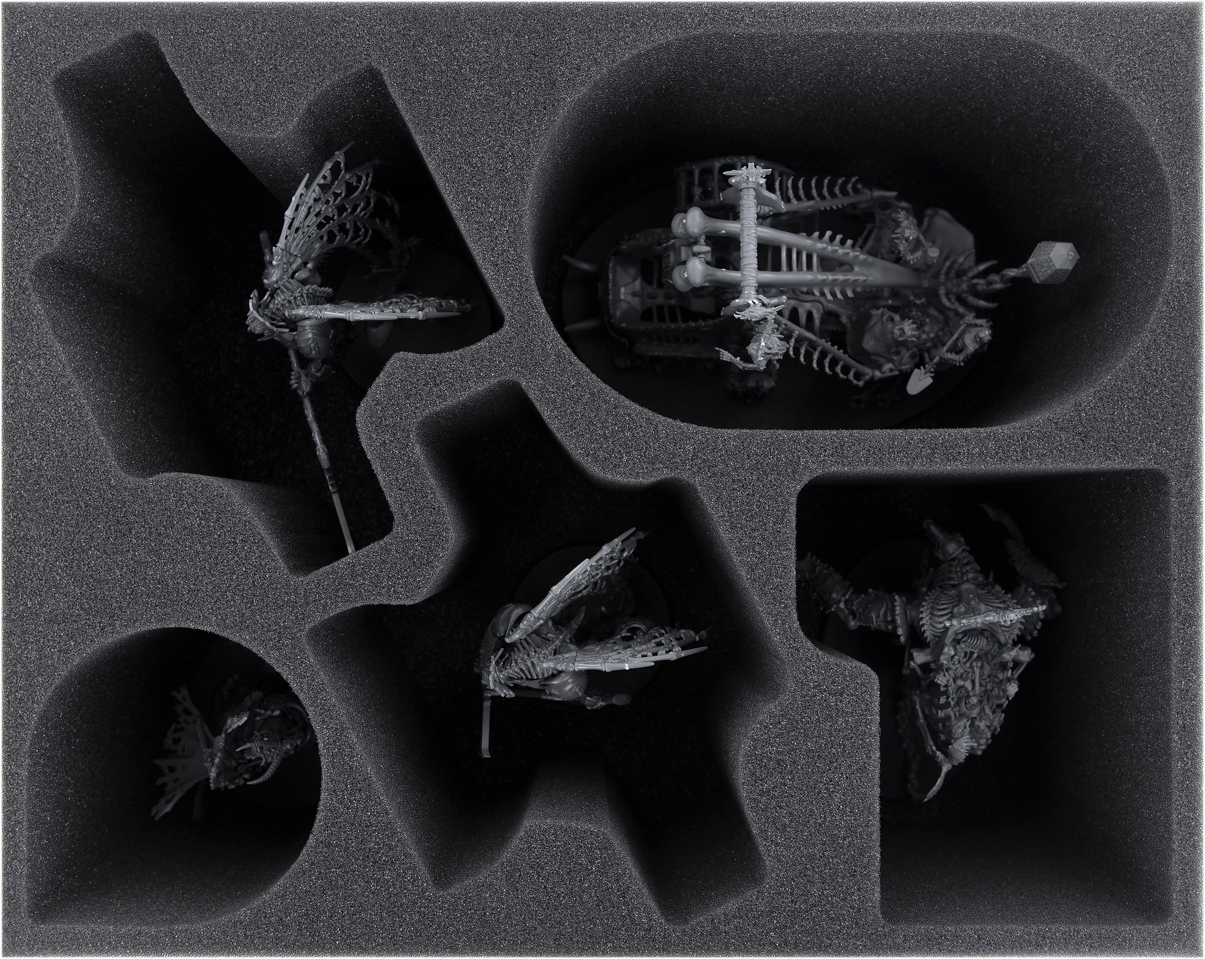The 130 mm high insert with a total of five tailor-made compartments offers space for the following models of the Ossiarch Bonereapers: