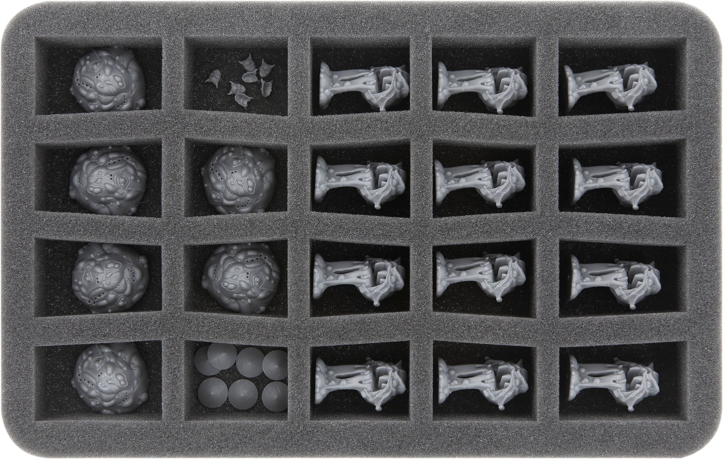 - 1 foam tray with 20 compartments for small miniatures (HS035C5BO)