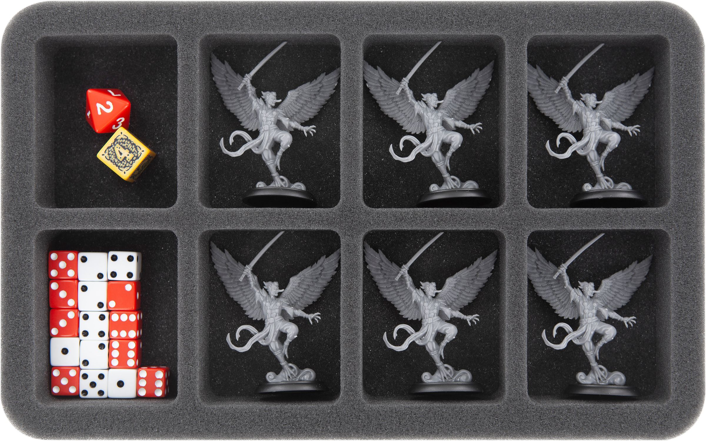 - 2 foam trays with 8 compartments each for medium-sized miniatures (HS040BF02BO)