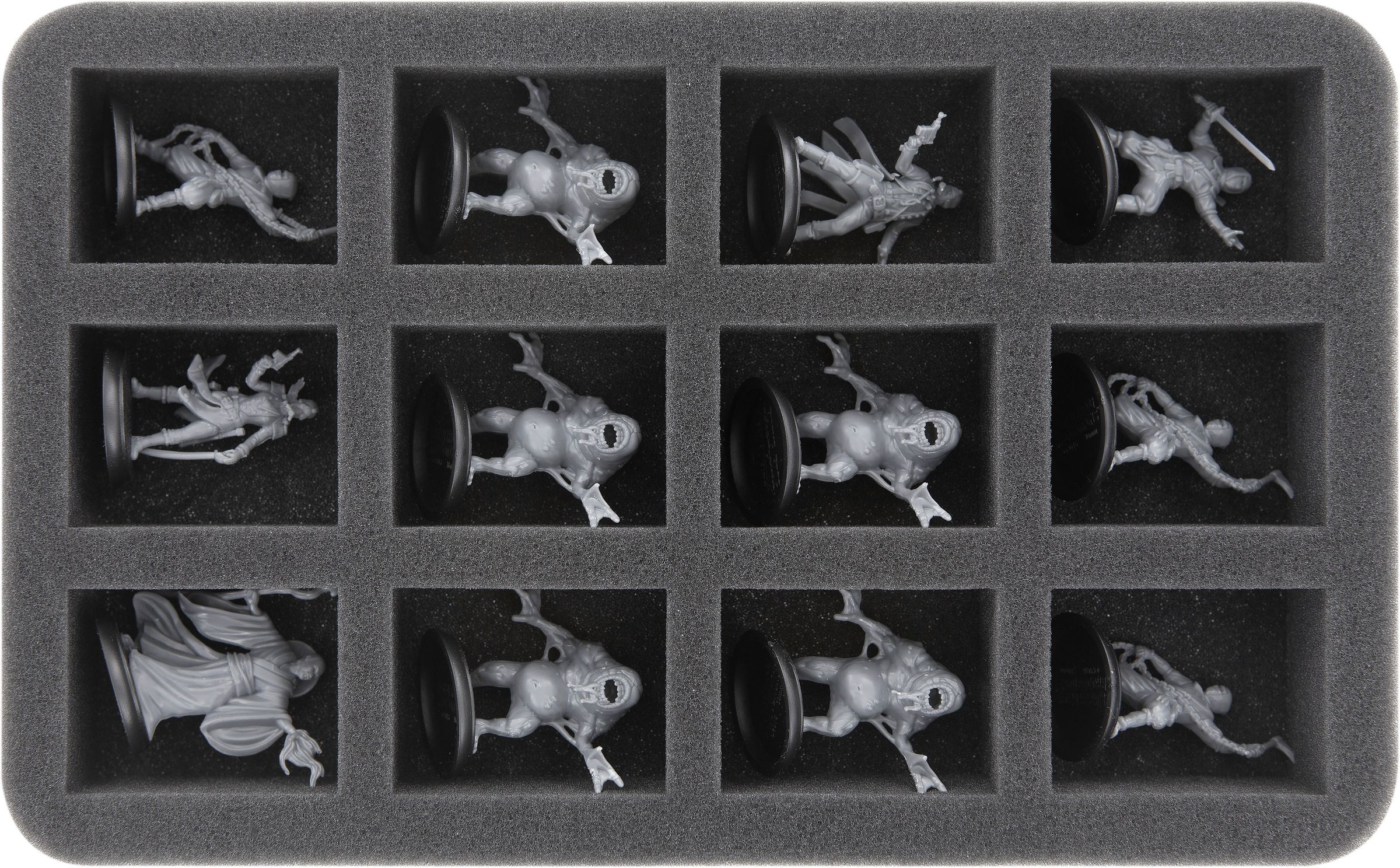 - 1 foam tray with 12 compartments for small miniatures (HS040I012BO)