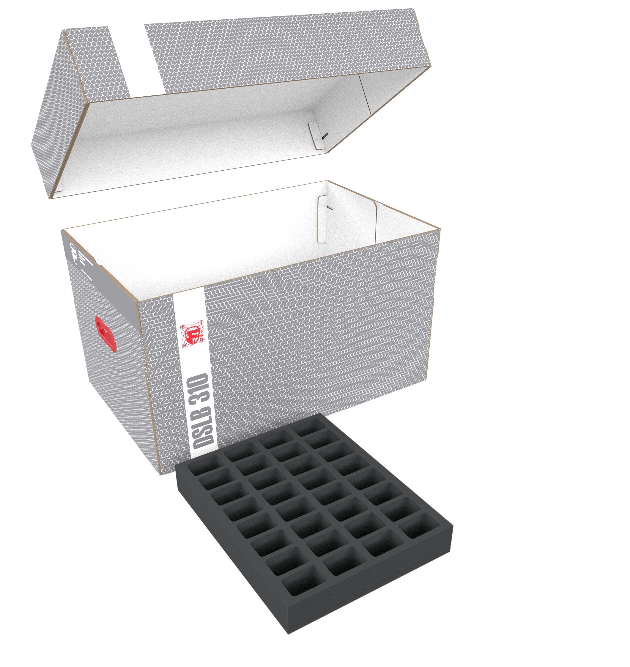 - 3 foam trays with 32 compartments each for miniatures FSMEDS050BO)