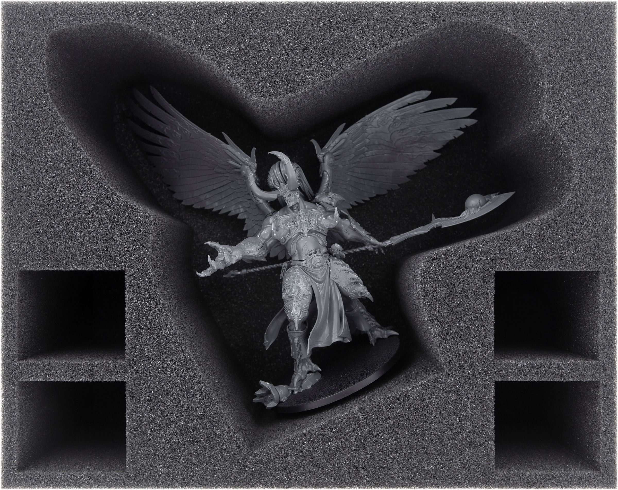 The foam tray for Magnus the Red is custom cut for the leader of the Thousand Sons. The great details of the magnificent figure, such as the blade and the huge wings, are therefore optimally protected against damage. The fine-pored foam also reliably protects the surface of the Daemon Primarch of the Tzeentch. So if you painted the model, you can be sure that the applied color remains intact. p>
