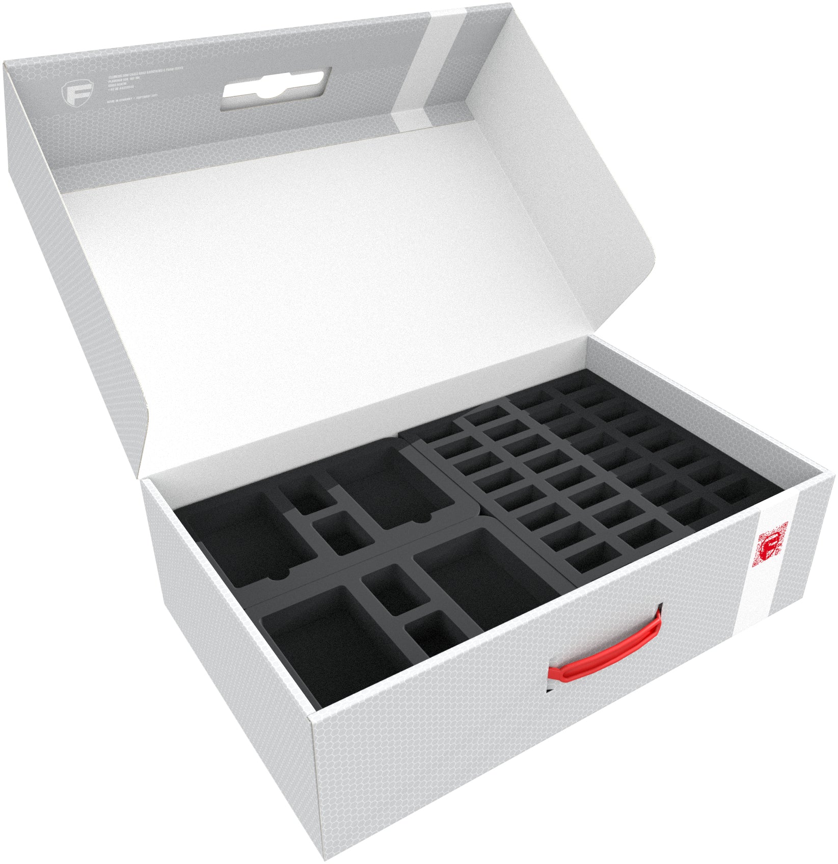 The included foam toppers complete the set. They ensure that your precious miniatures and game material are protected from all sides by foam.