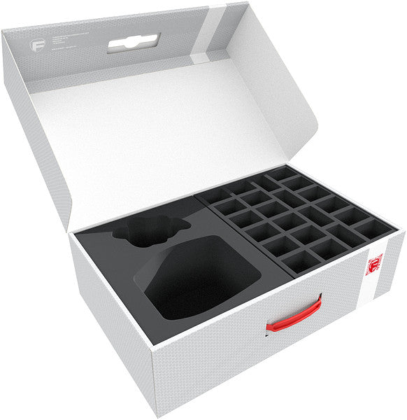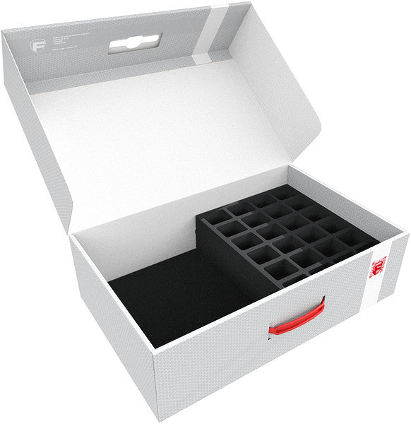 In this sturdy DSLB150 Storage Box, your miniatures are optimally protected. With the custom-made Feldherr foam trays, you can safely transport up to 70 warrior models to your next battle.
