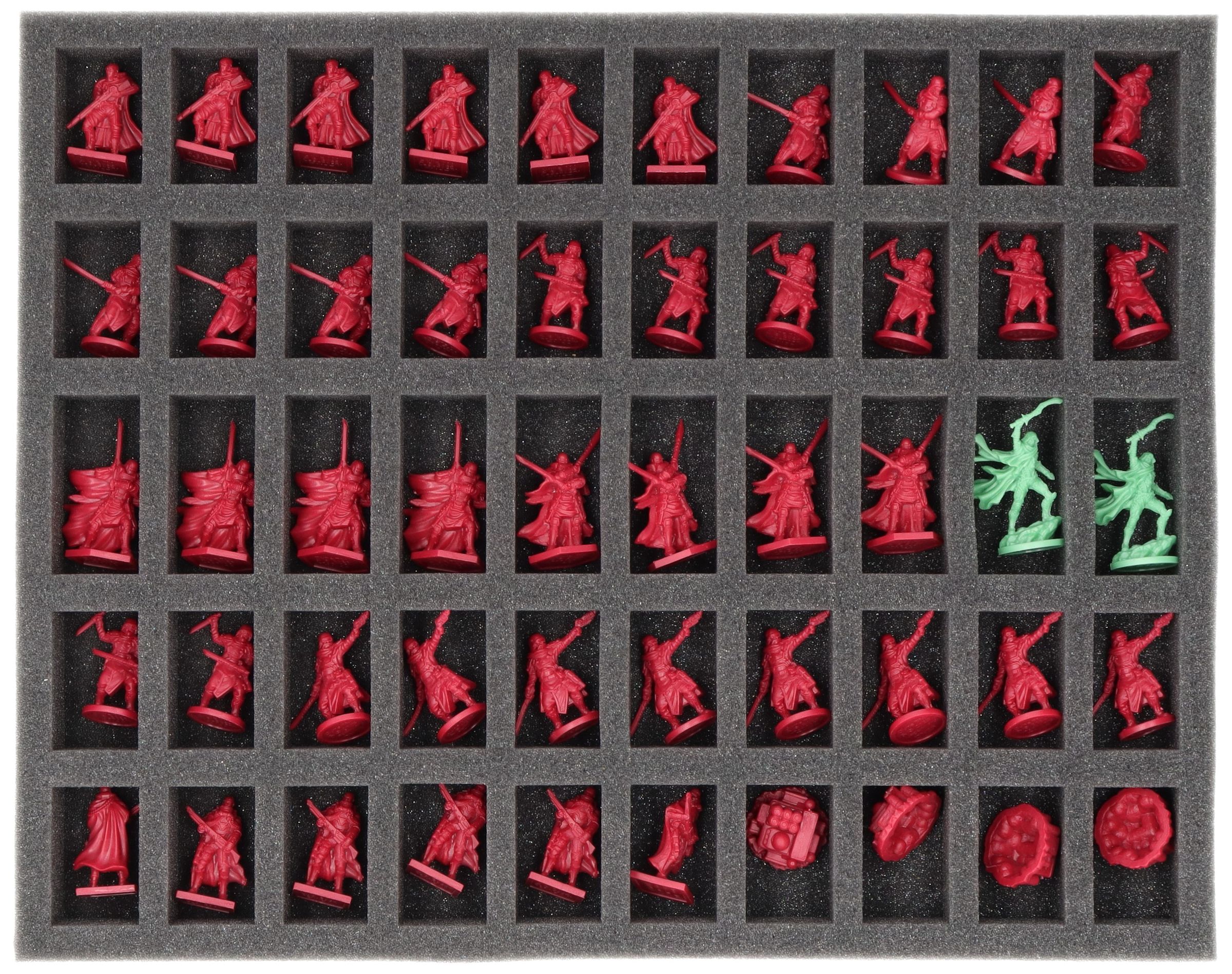 • 1 Full-Size foam tray with 13 compartments for miniatures, cards, and game material (FSLG050BO)