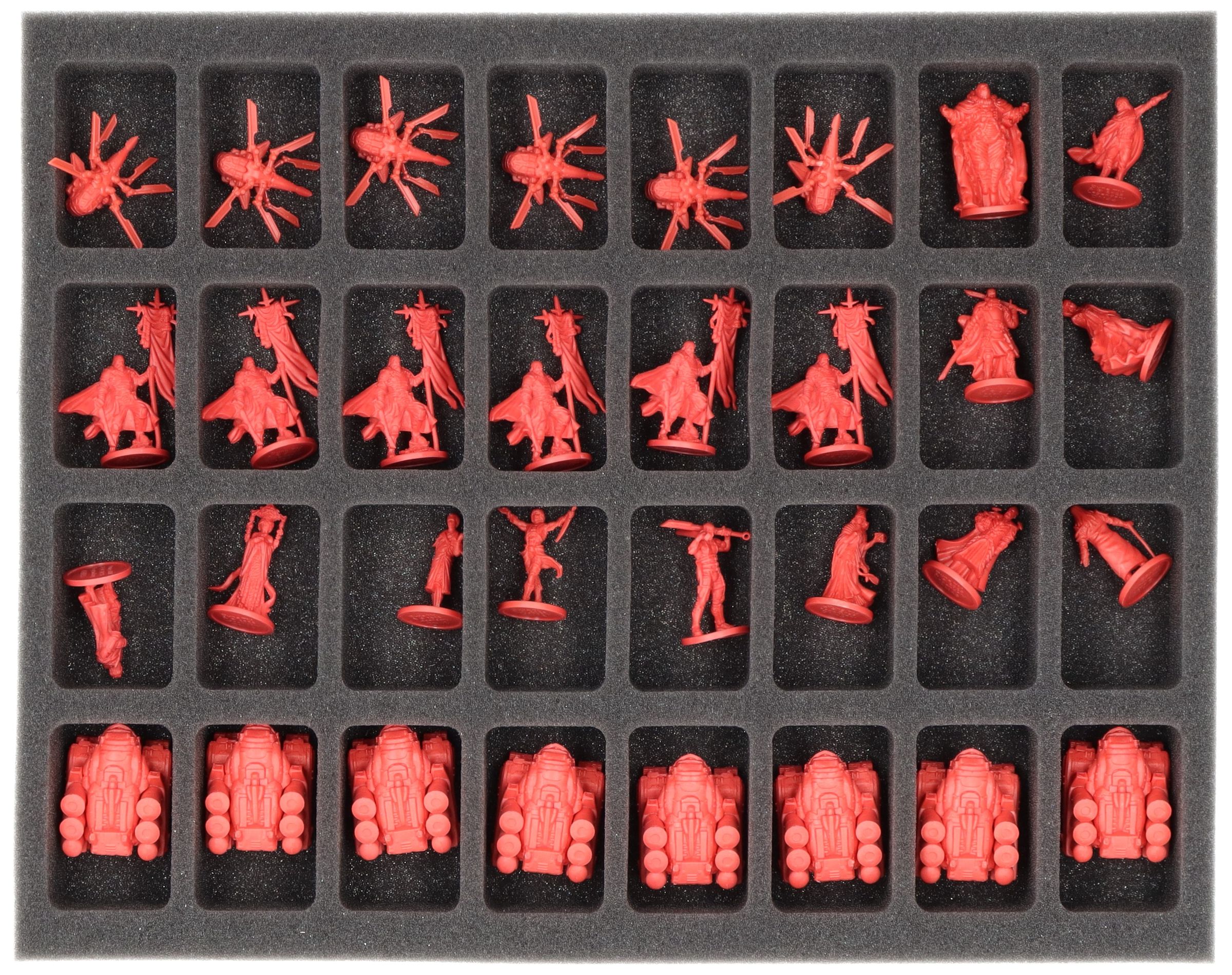 • 1 Full-Size foam tray with 32 compartments for miniatures (FSMEDS040BO)
