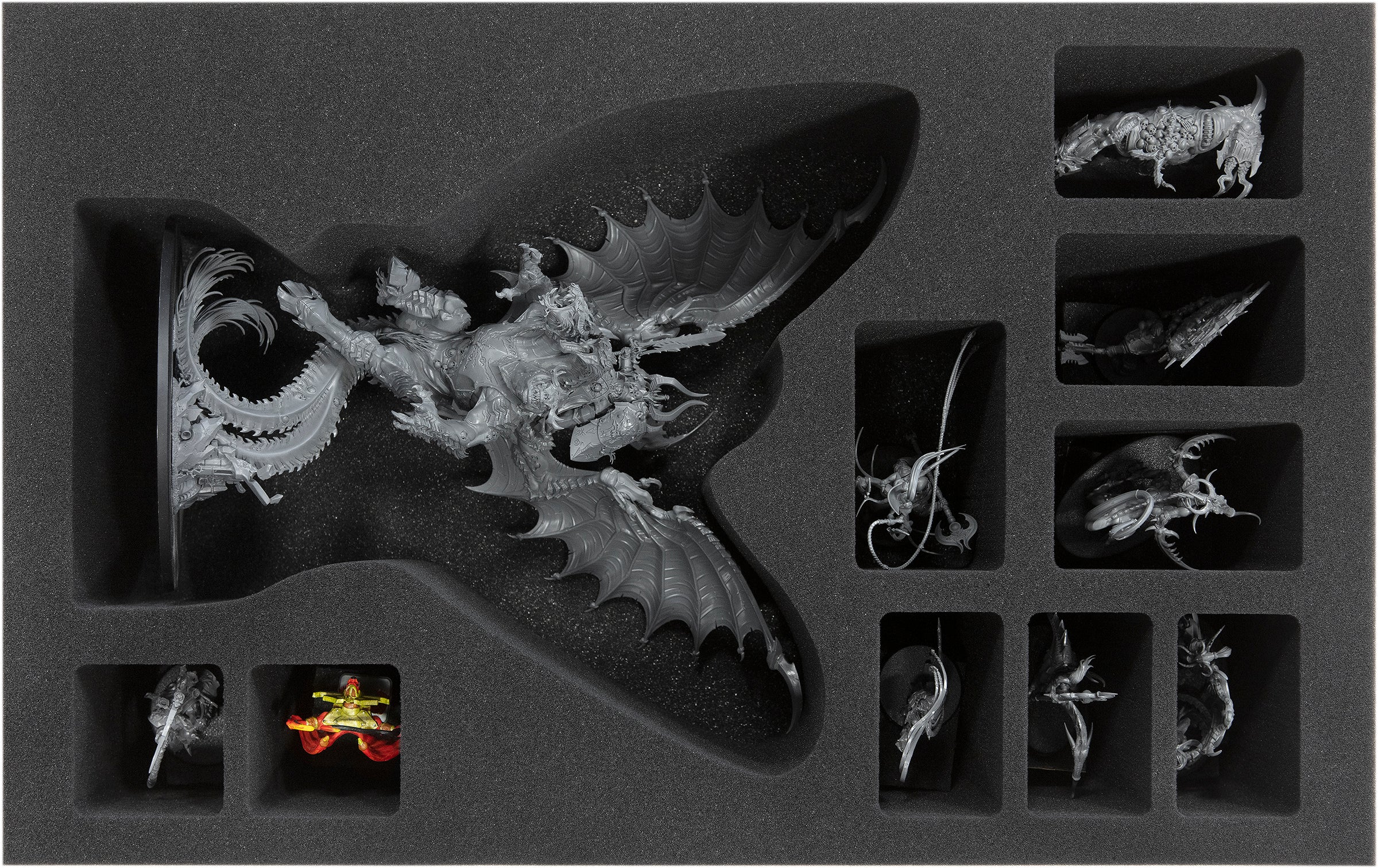 - 2 Full-Size foam trays, each with 6 compartments for e.g. Knight Abominant, Varanguard, Chaos Lord on Karkadrak, Chaos Lord on Daemonic Mount (FSMEKU070BO)