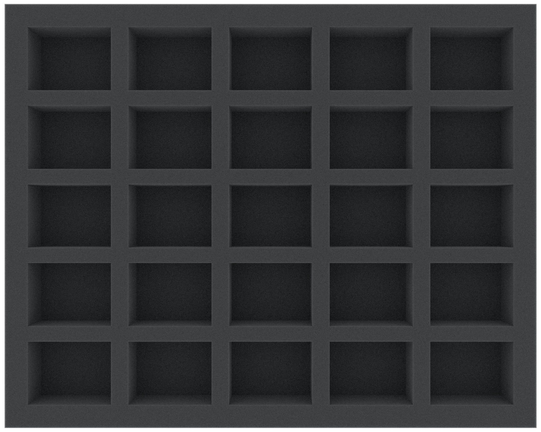 The foam tray has 25 compartments which will hold miniatures of different sizes. The fine-pored foam reliably protects your figures – fragile parts remain intact, the color of painted models remains unharmed.