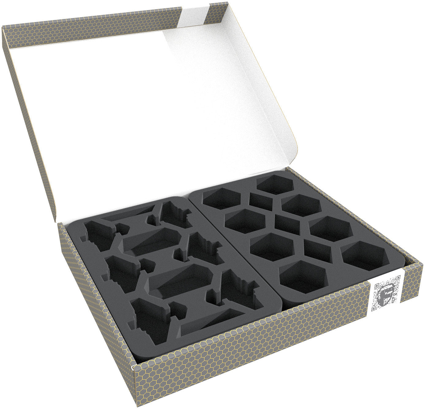 The inserts are well stored in the Feldherr Storage Box FSLB040. The box is made of coated, corrugated cardboard. This makes it not only pleasantly light but also particularly tear-resistant and stable. Thus, the miniatures can be stored safely and dust-protected, and thanks to the flat, compact form, they can be easily transported.