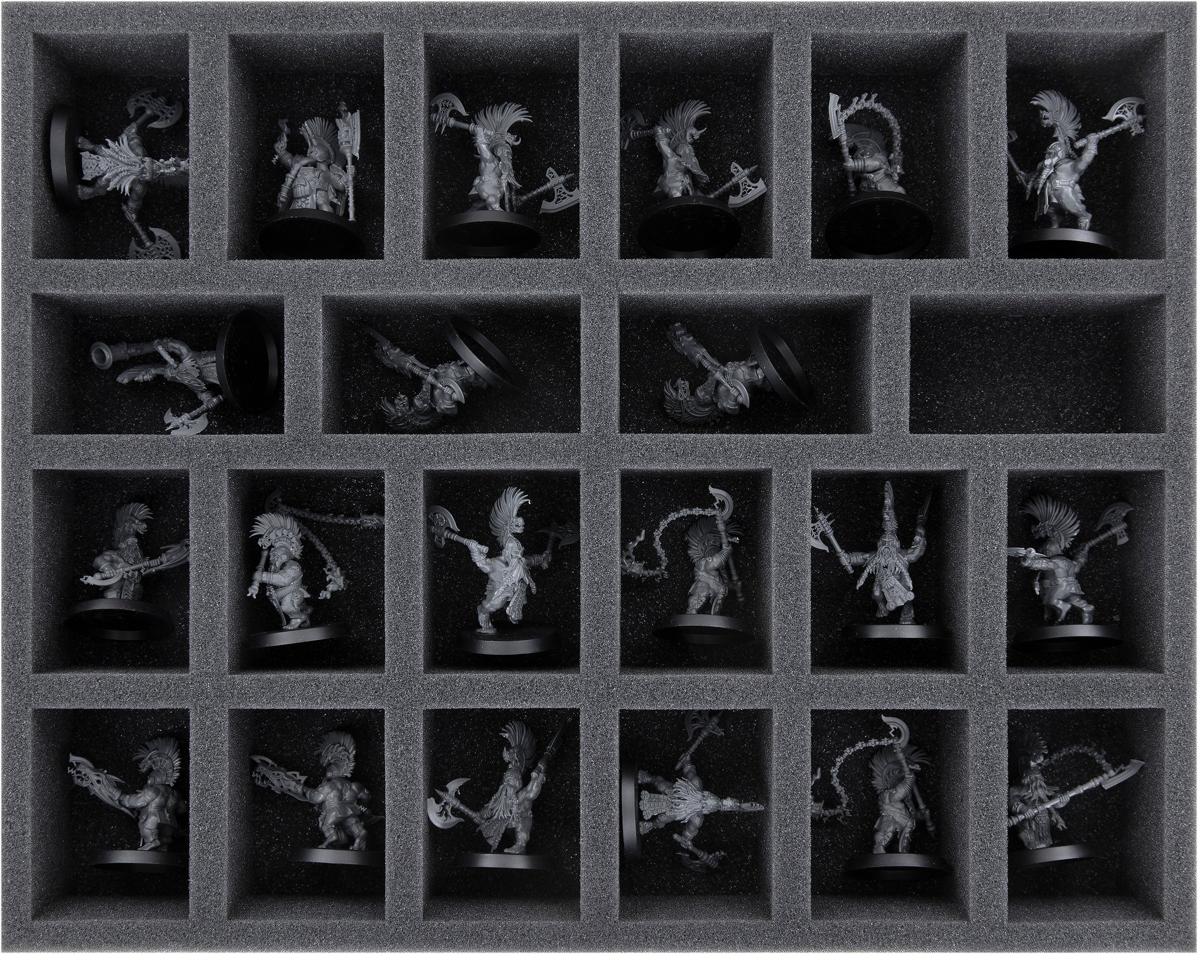 - 1 Full-Size foam tray with 22 compartments for all Fyreslayers miniatures of Fury of the Deep (FSMEZZ050BO)