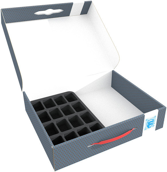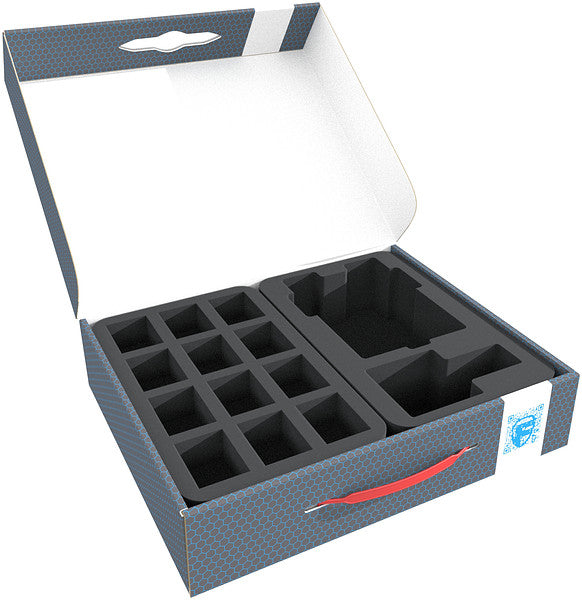 This FSLB075 Storage Box with matching Feldherr foam trays is great for storing up to 28 warrior models and 1 tank from your Astra Militarum army and transporting them well-protected to the slaughter.