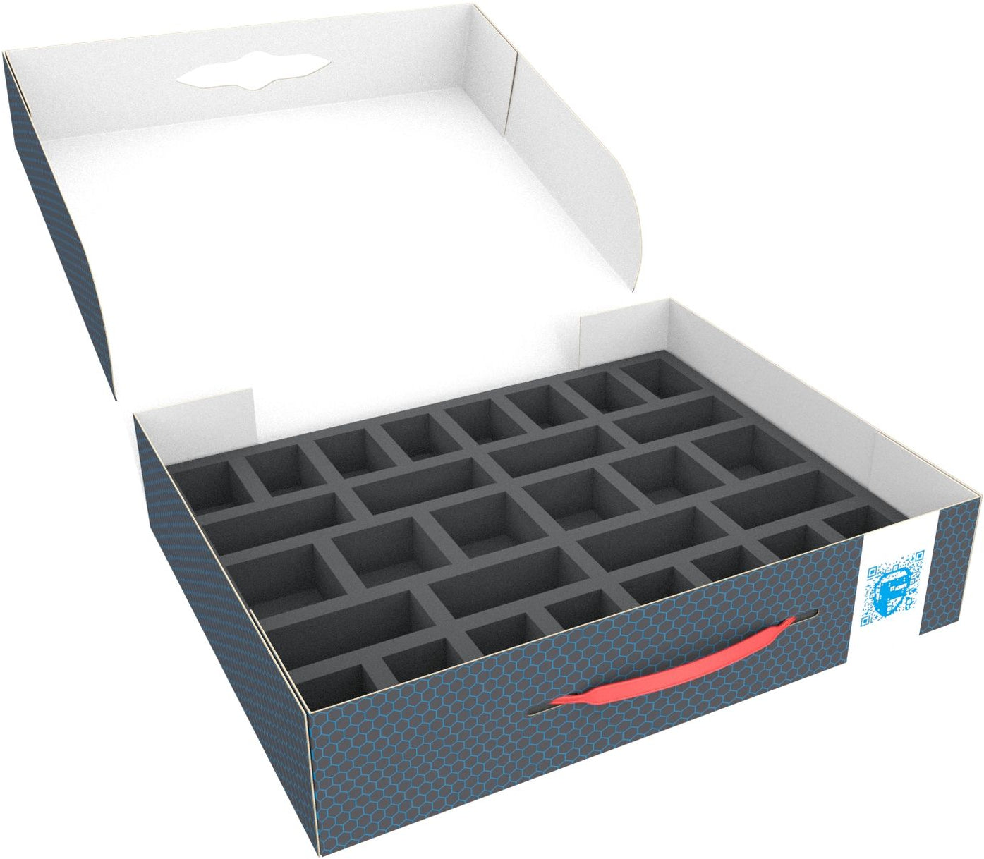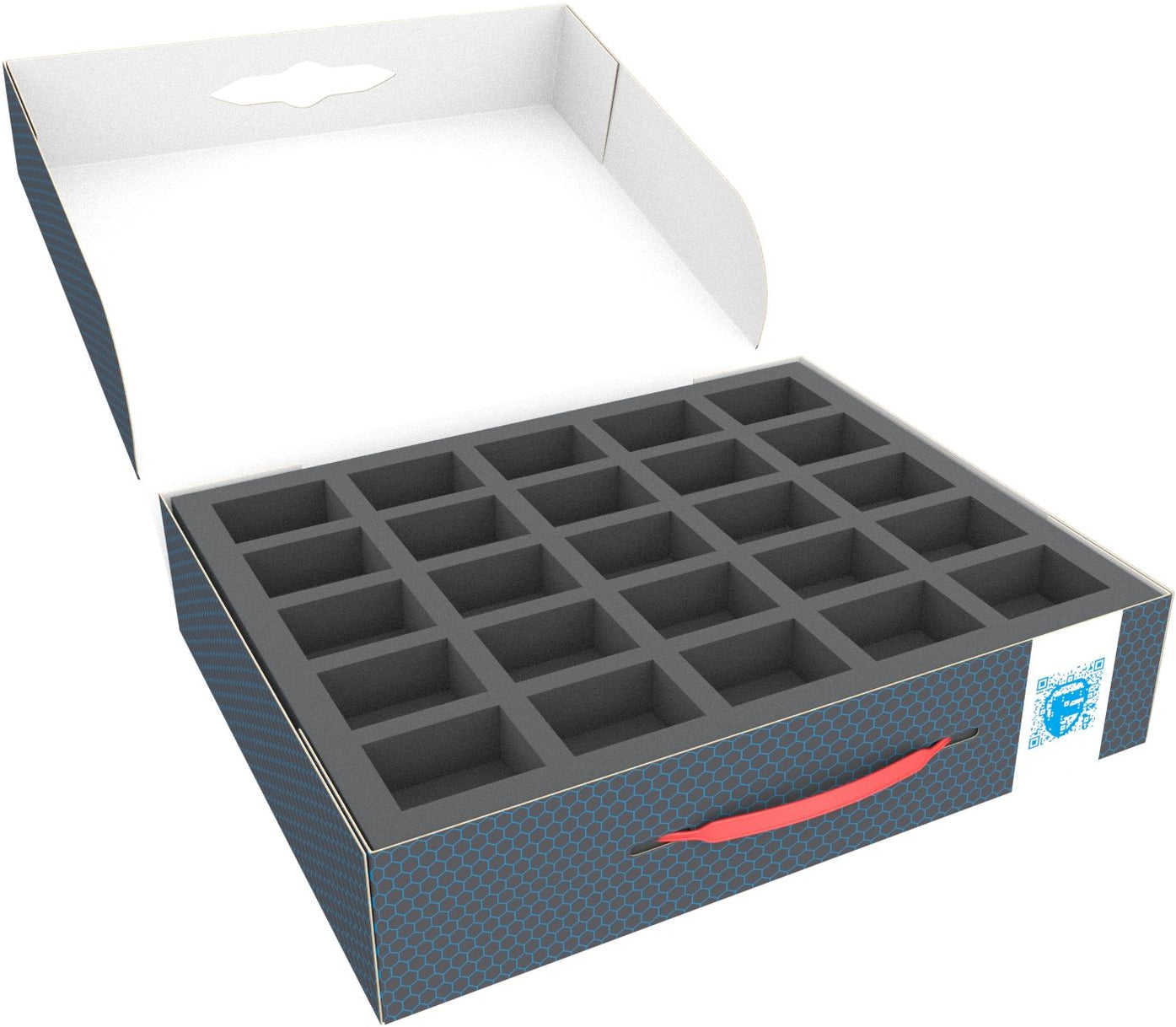 - 1 Full-Size foam tray with 25 compartments for standard infantry like Daemonettes and miniatures with similar dimensions (FSLQ035BO)